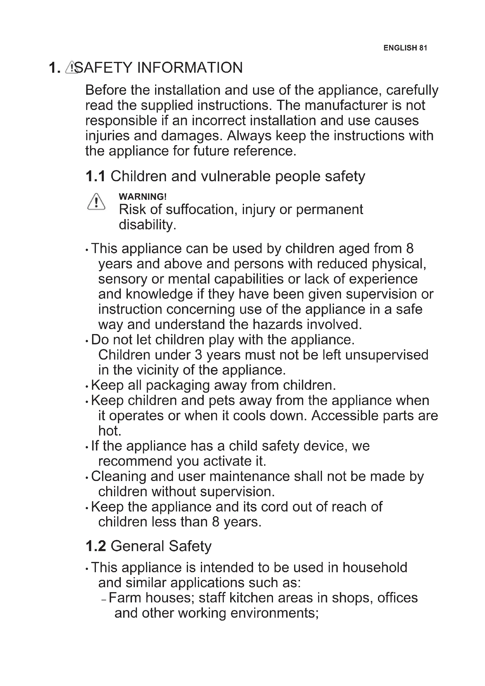 - This appliance can be used by children aged from 8 years and above and persons with reduced physical, sensory or mental capabilities or lack of experience and knowledge if they have been given supervision or instruction concerning use of the appliance in a safe way and understand the hazards involved.