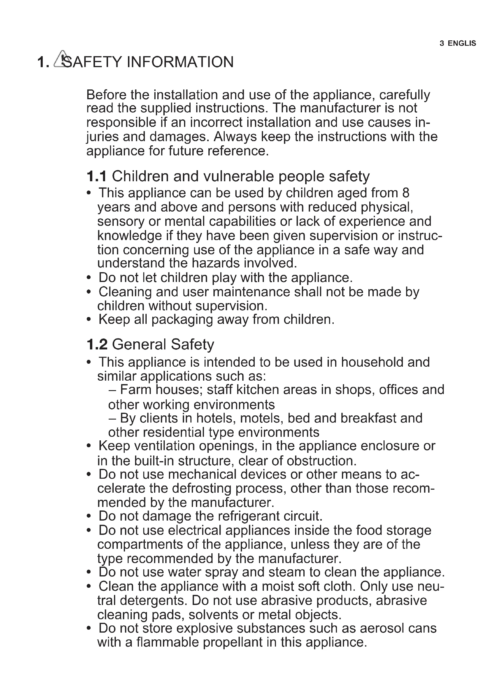 - Keep ventilation openings, in the appliance enclosure or in the built-in structure, clear of obstruction.