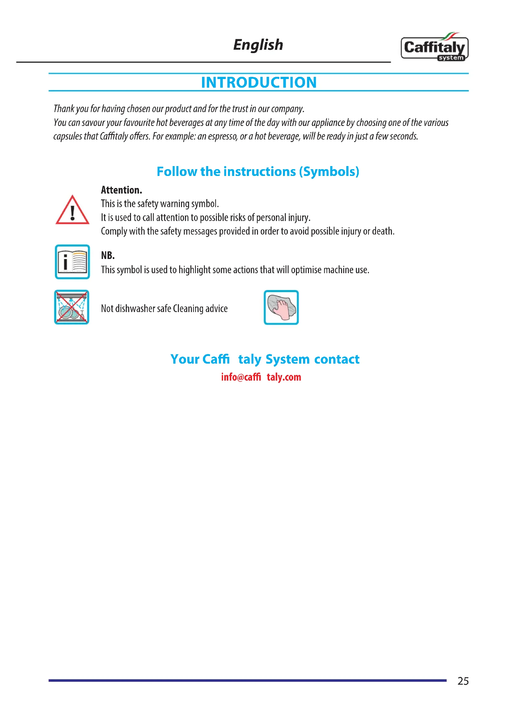 Your Caffitaly System contact 25
