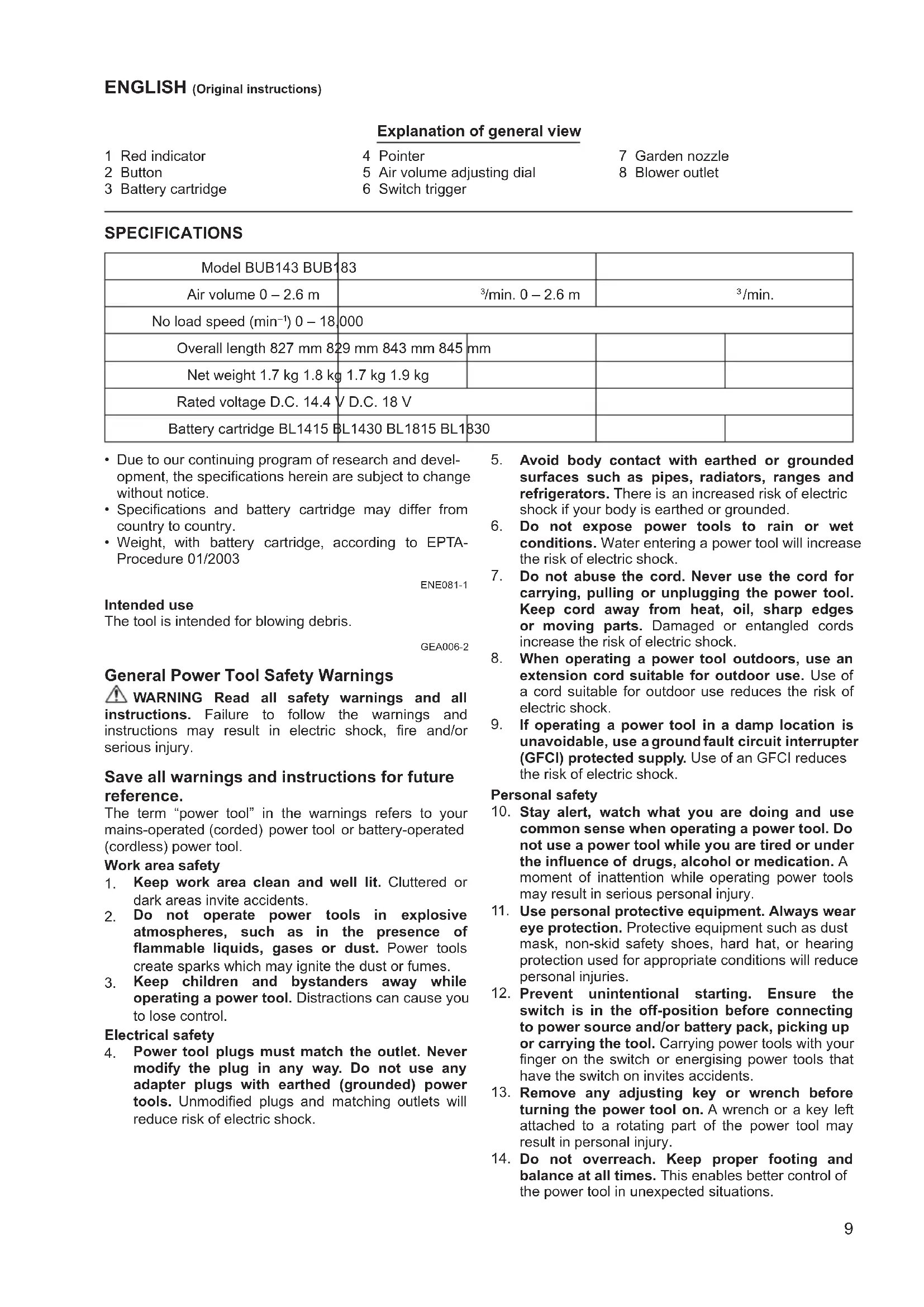BUB143 - Leaf blower MAKITA - Free user manual and instructions