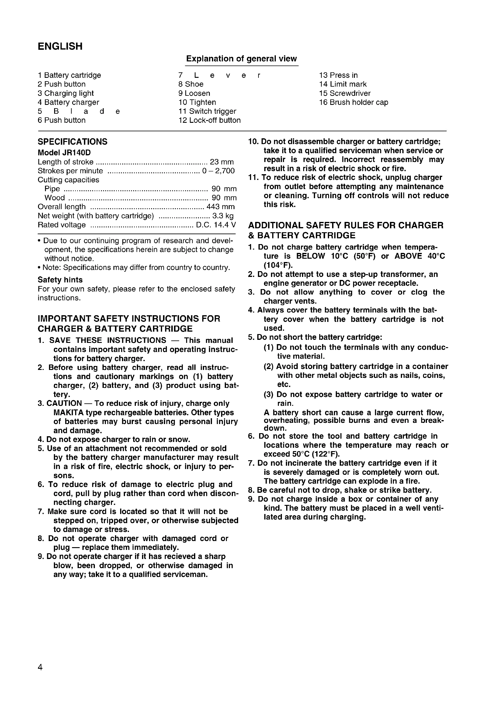 JR140D - Electric saw MAKITA - Free user manual and instructions