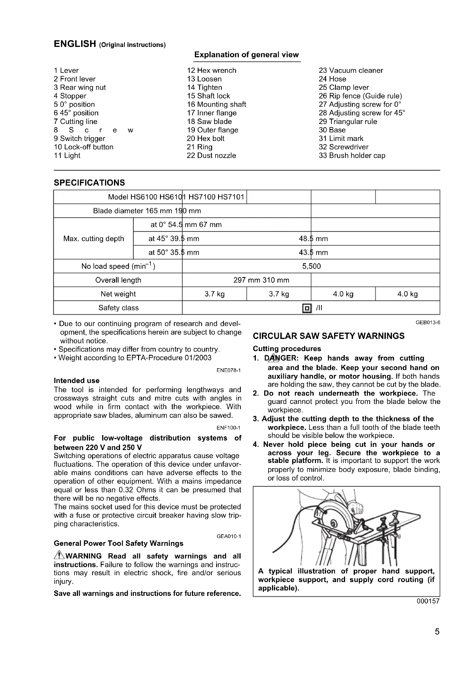 HS6100 - Circular saw MAKITA - Free user manual and instructions