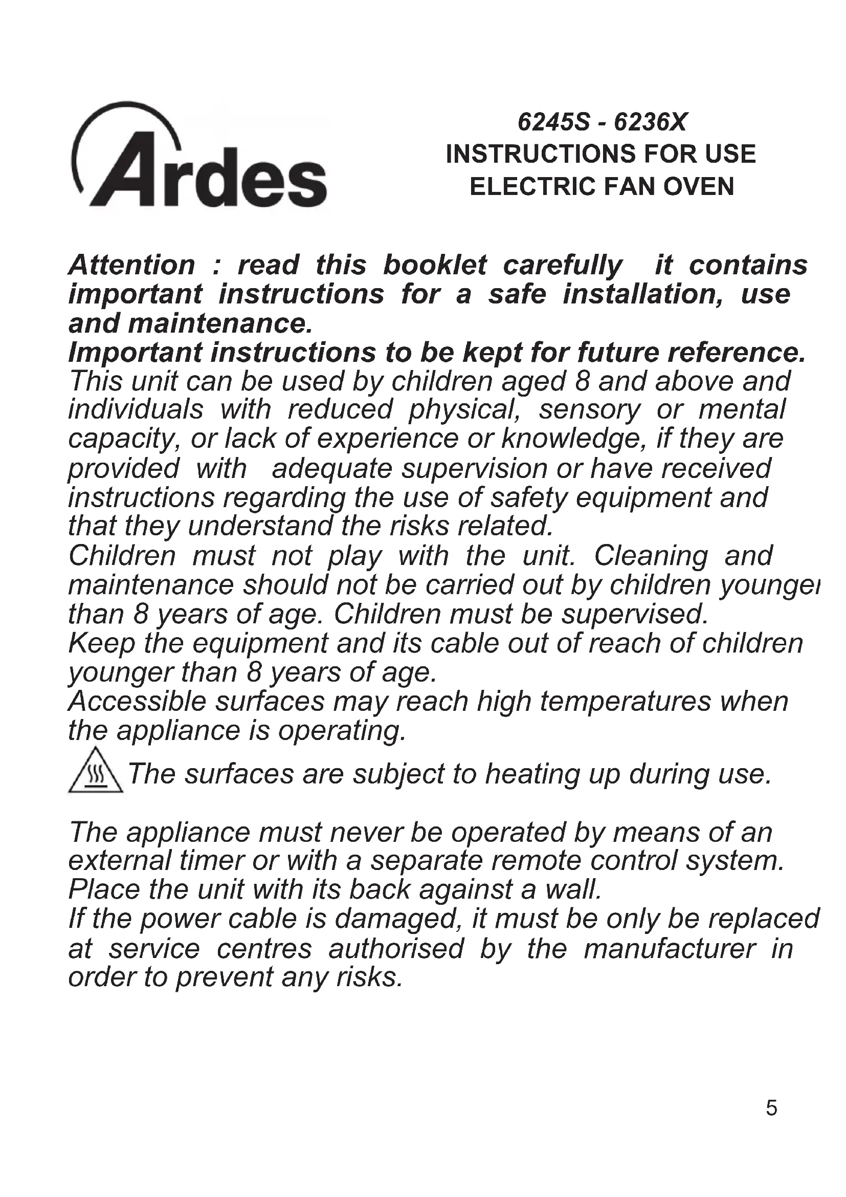 AR6245S - Oven ARDES - Free user manual and instructions