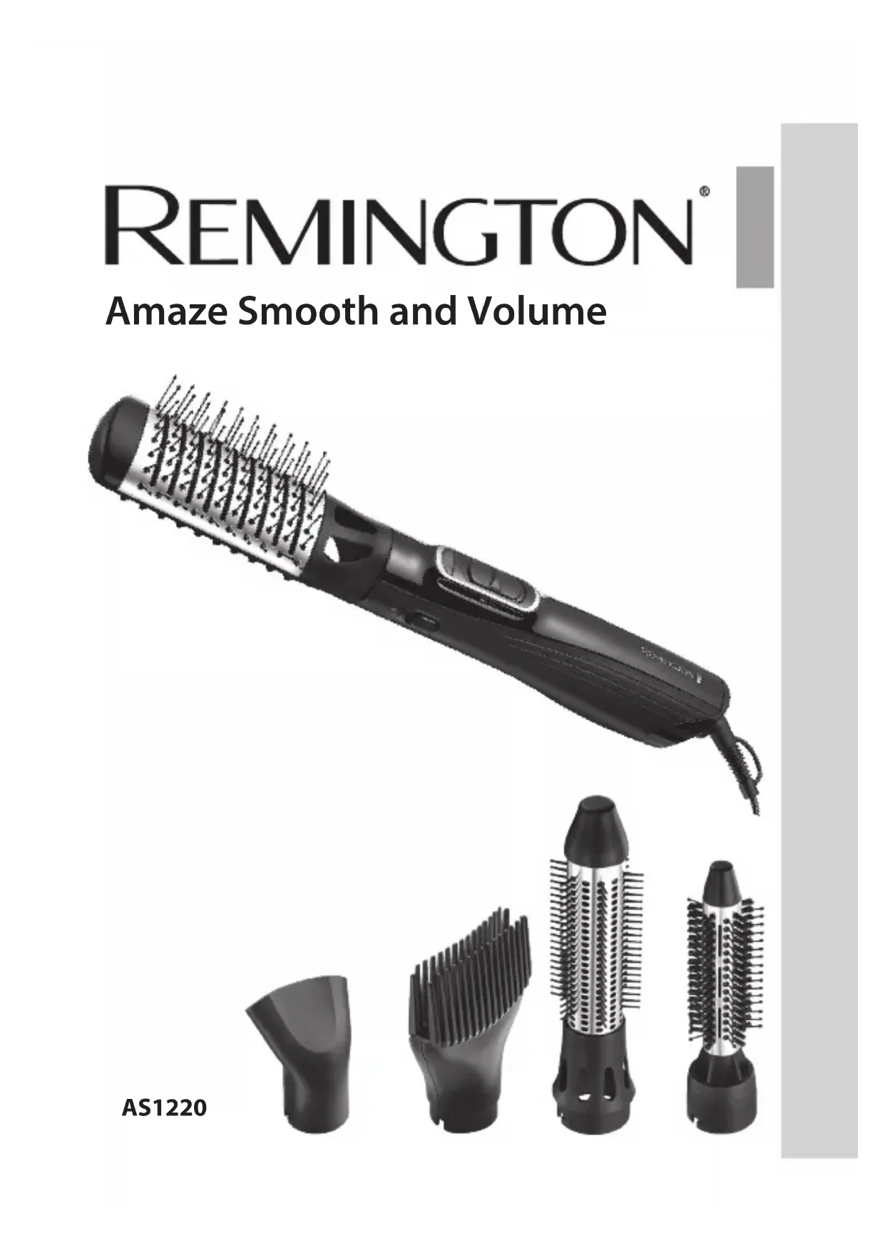 AS1220 Amaze Smooth and Volume2 Thank you for buying your new Remington® product. Please read these instructions carefully and keep them safe. Remove all packaging before use. , WARNING: This appliance is hot. Keep out of reach of children at all times.