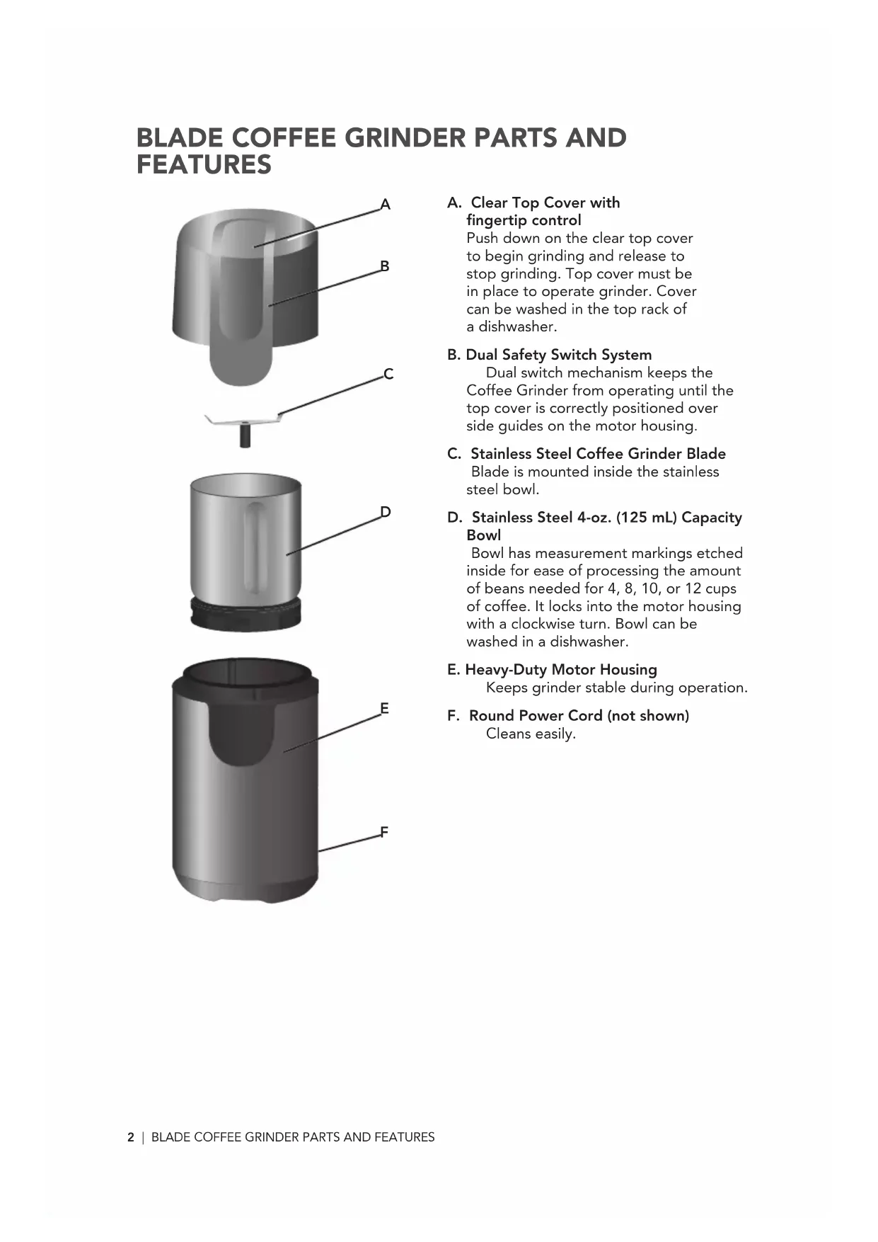 - Be certain cover is securely locked in place before operating Blade Coffee Grinding.