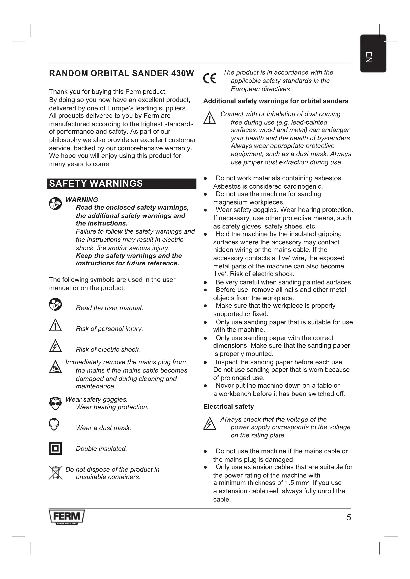 ESM1010 - Electric sander Ferm - Free user manual and instructions