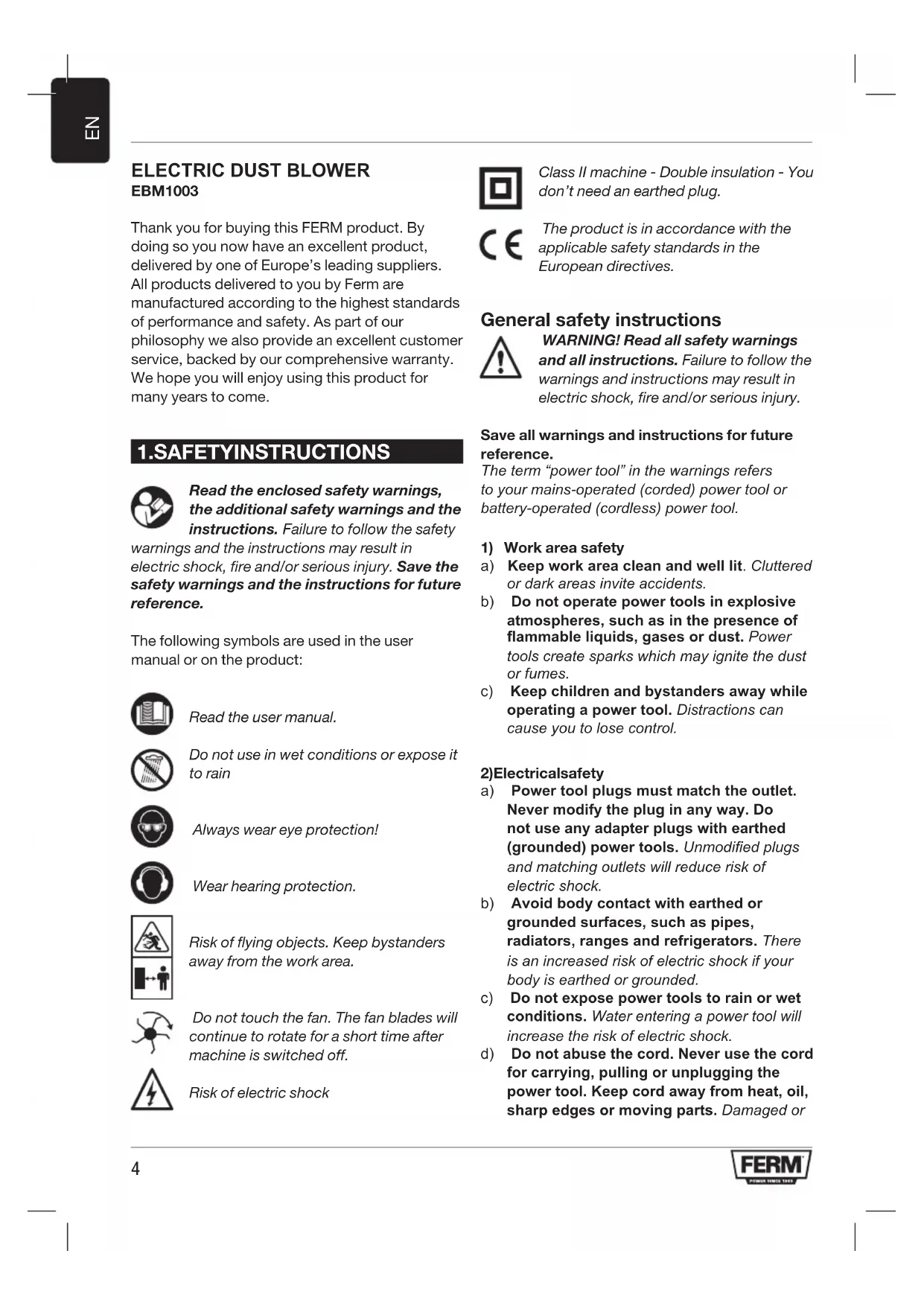 EBM1003 - Blower Ferm - Free user manual and instructions