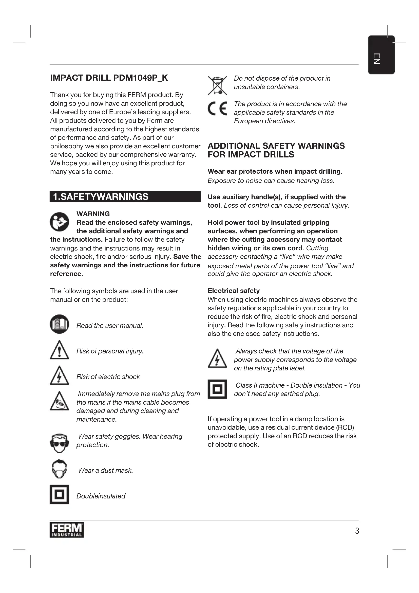 USER MANUAL PDM1049P Ferm