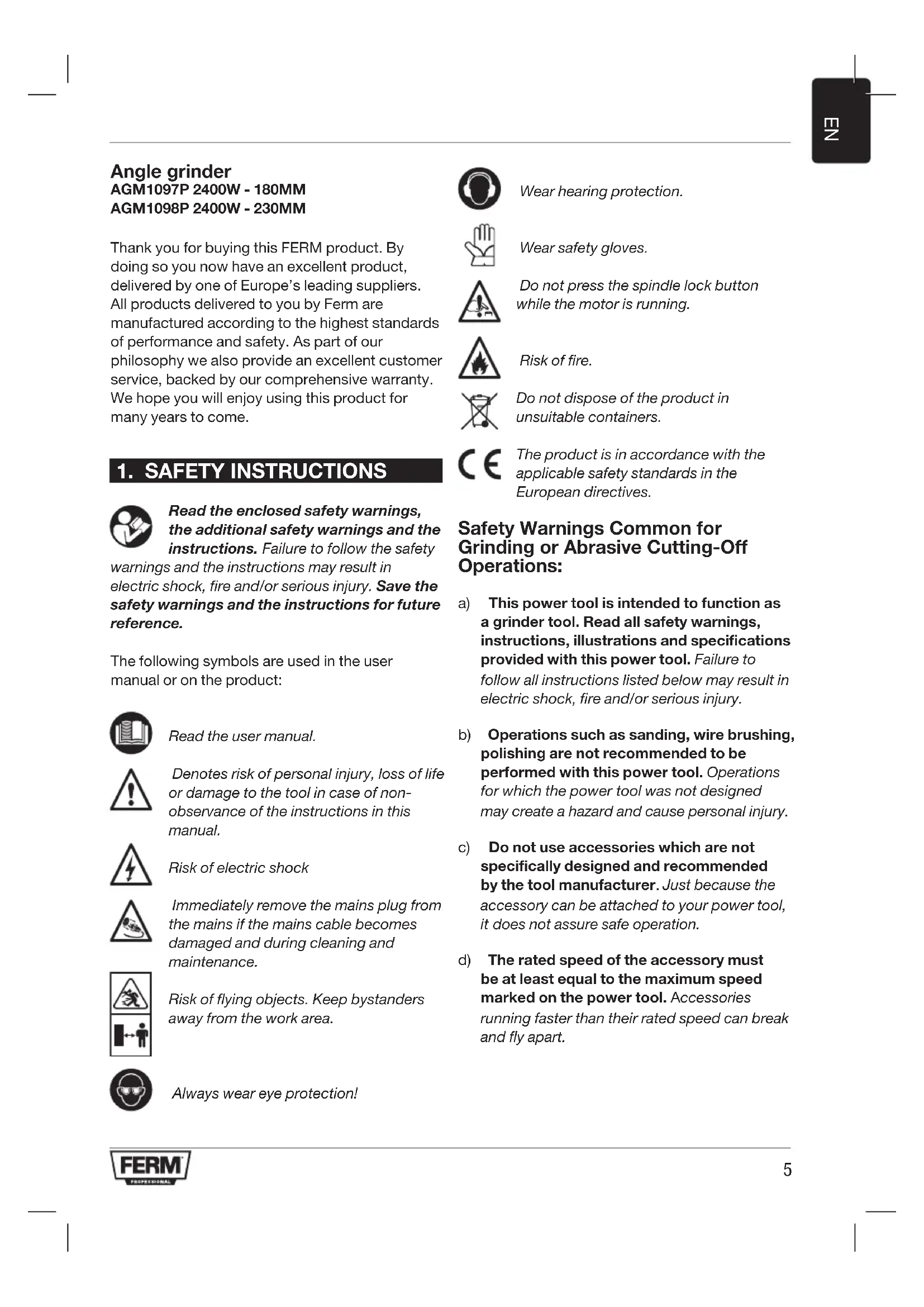 AGM1098P - Electric grinder Ferm - Free user manual and instructions