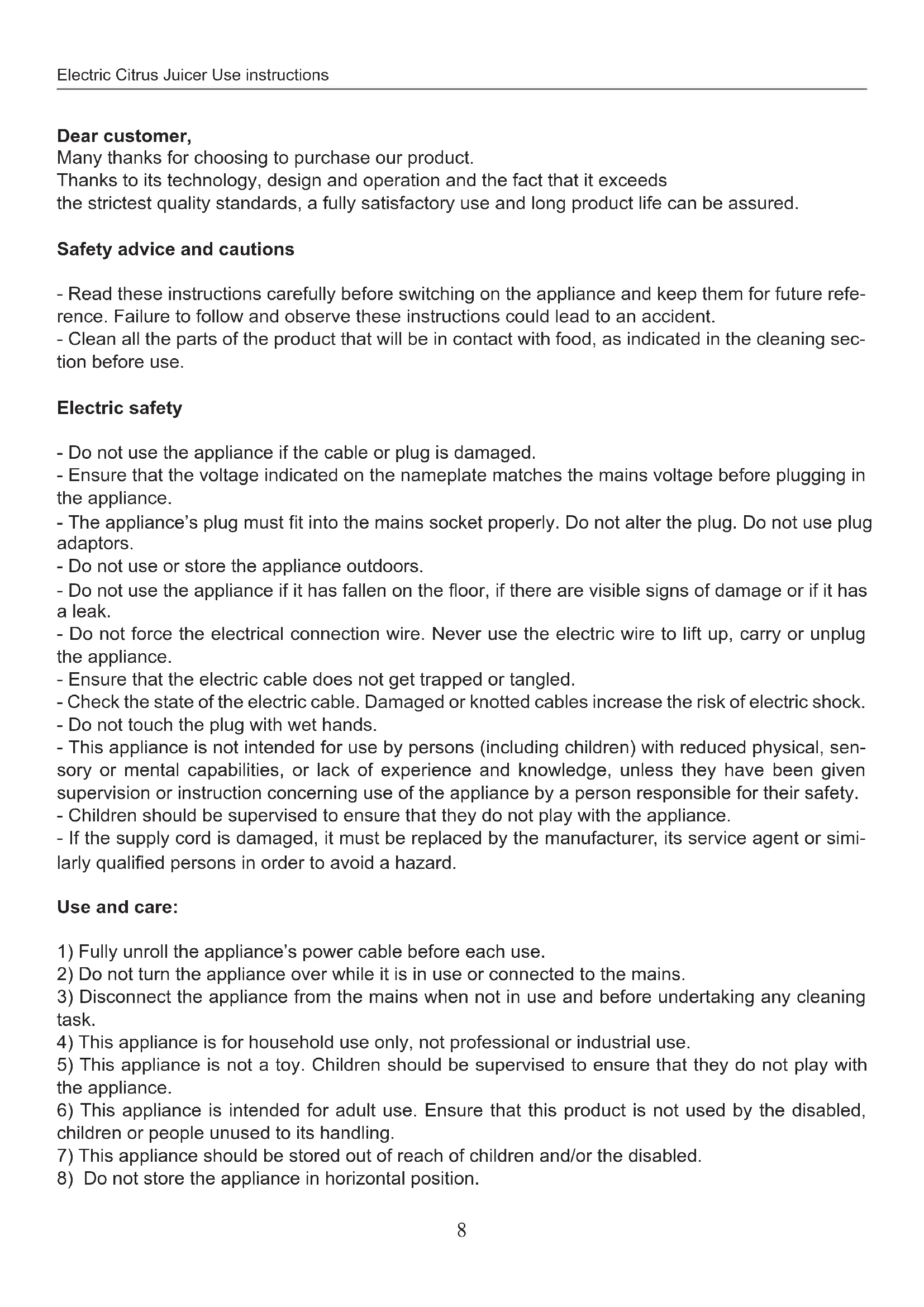 Arancia 90.307 - Juicer Beper - Free user manual and instructions