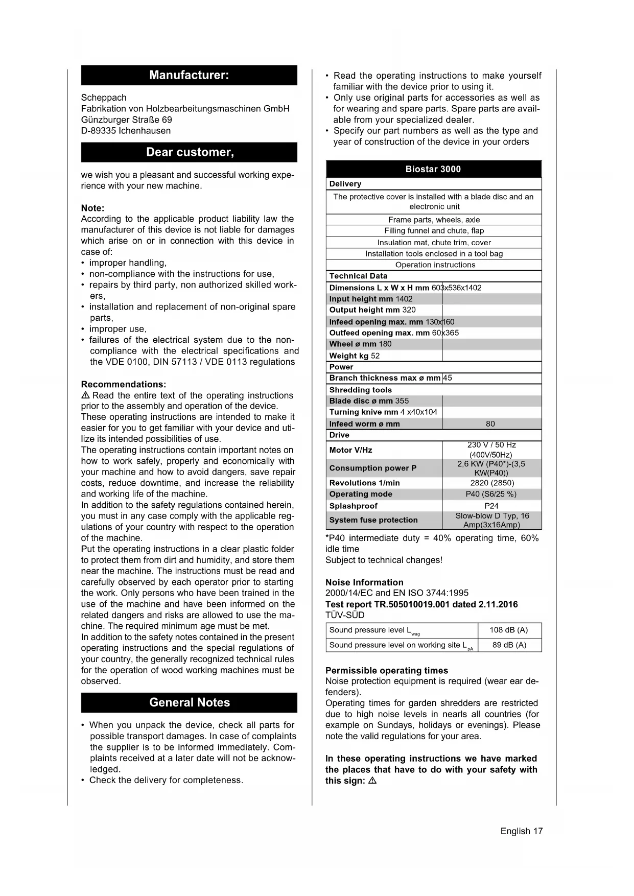 Download the instructions for your Mechanical chipper in PDF format for free! Find your manual Biostar 3000 - SCHEPPACH and take your electronic device back in hand. On this page are published all the documents necessary for the use of your device. Biostar 3000 by SCHEPPACH.