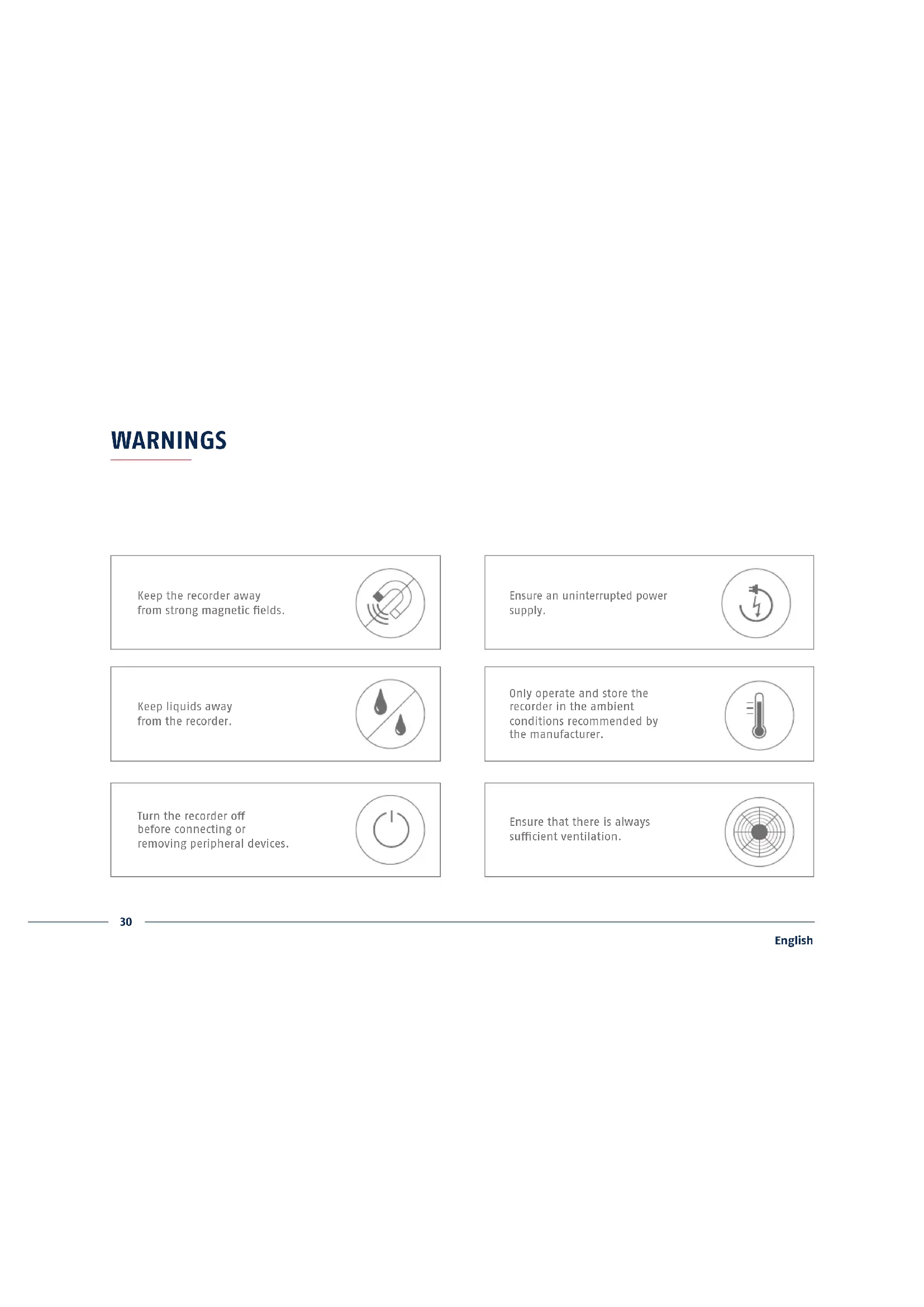 Keep liquids away from the recorder.