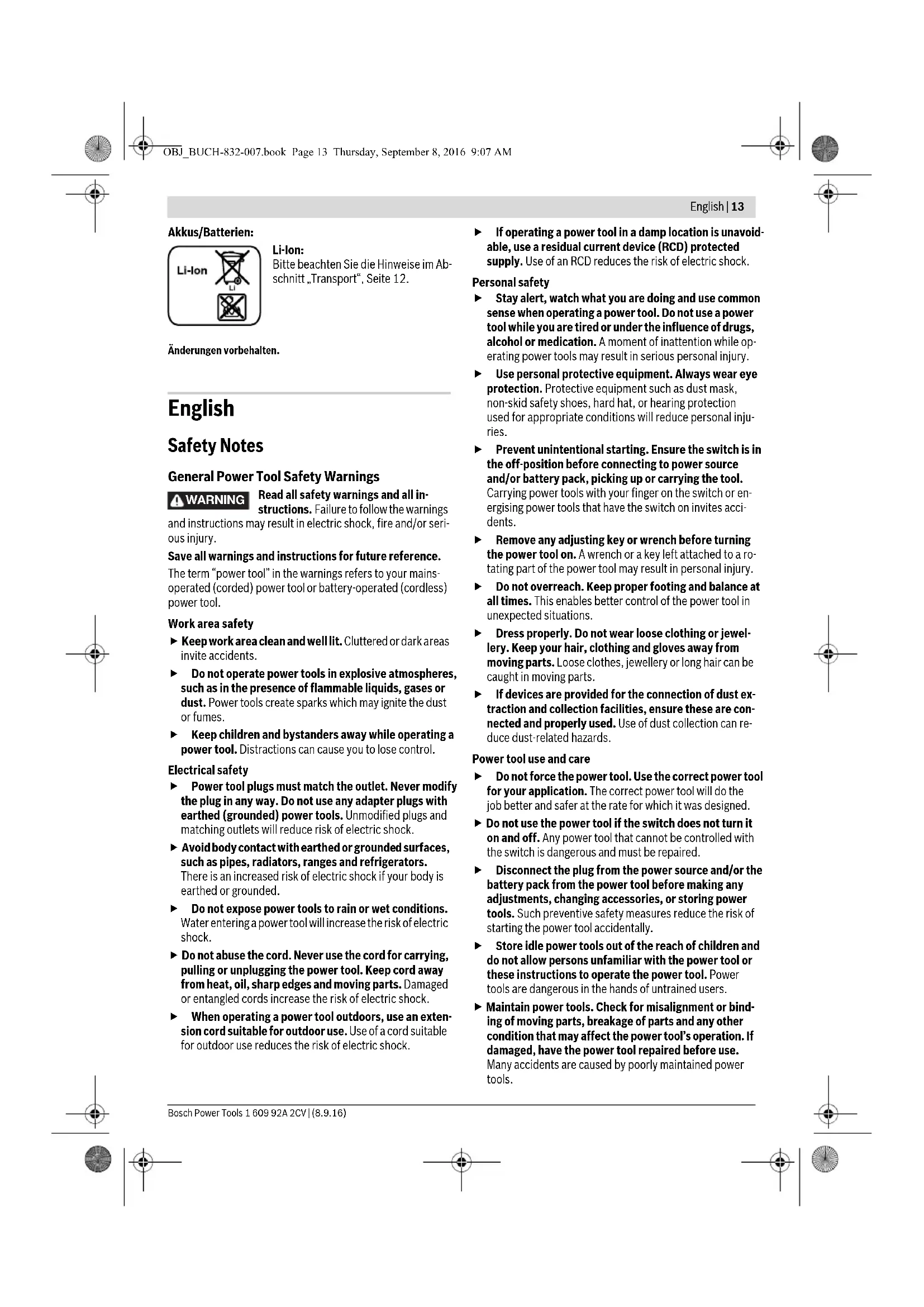 OBJ_BUCH-832-007.book Page 2 Tuesday, September 6, 2016 9:58 AM3 | 1 609 92A 2CV | (6.9.16) Bosch Power Tools OBJ_BUCH-832-007.book Page 3 Tuesday, September 6, 2016 9:58 AM1 609 92A 2CV | (6.9.16) Bosch Power Tools 4 |