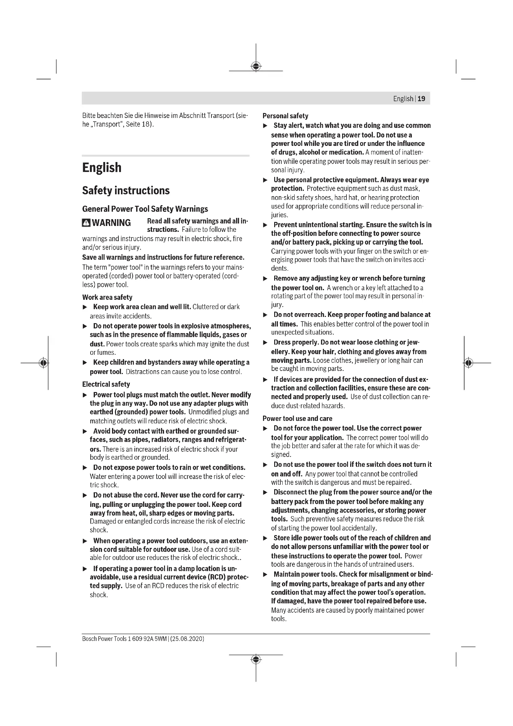Low Energy devices (version 4.2) and support the Generic Access Profile (GAP). E) The signal range may vary greatly depending on external conditions, including the receiving device used. The Bluetooth® range may be signi- ficantly weaker inside closed rooms and through metallic barriers (e.g. walls, shelving units, cases, etc.). Bosch Power Tools 1 609 92A 5WM | (25.08.2020)24 | English Noise/Vibration Information
