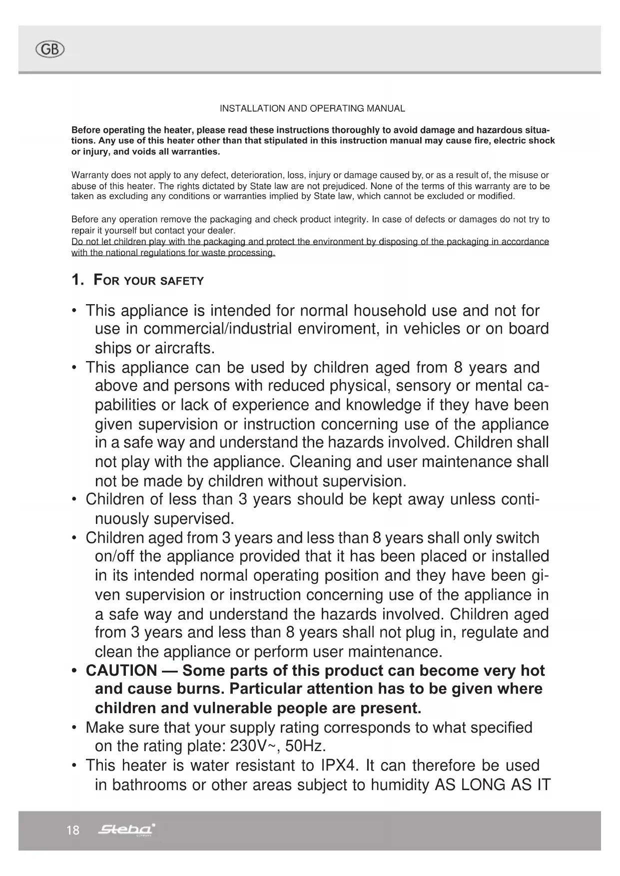 BS 1800 Touch - Heating STEBA - Free user manual and instructions