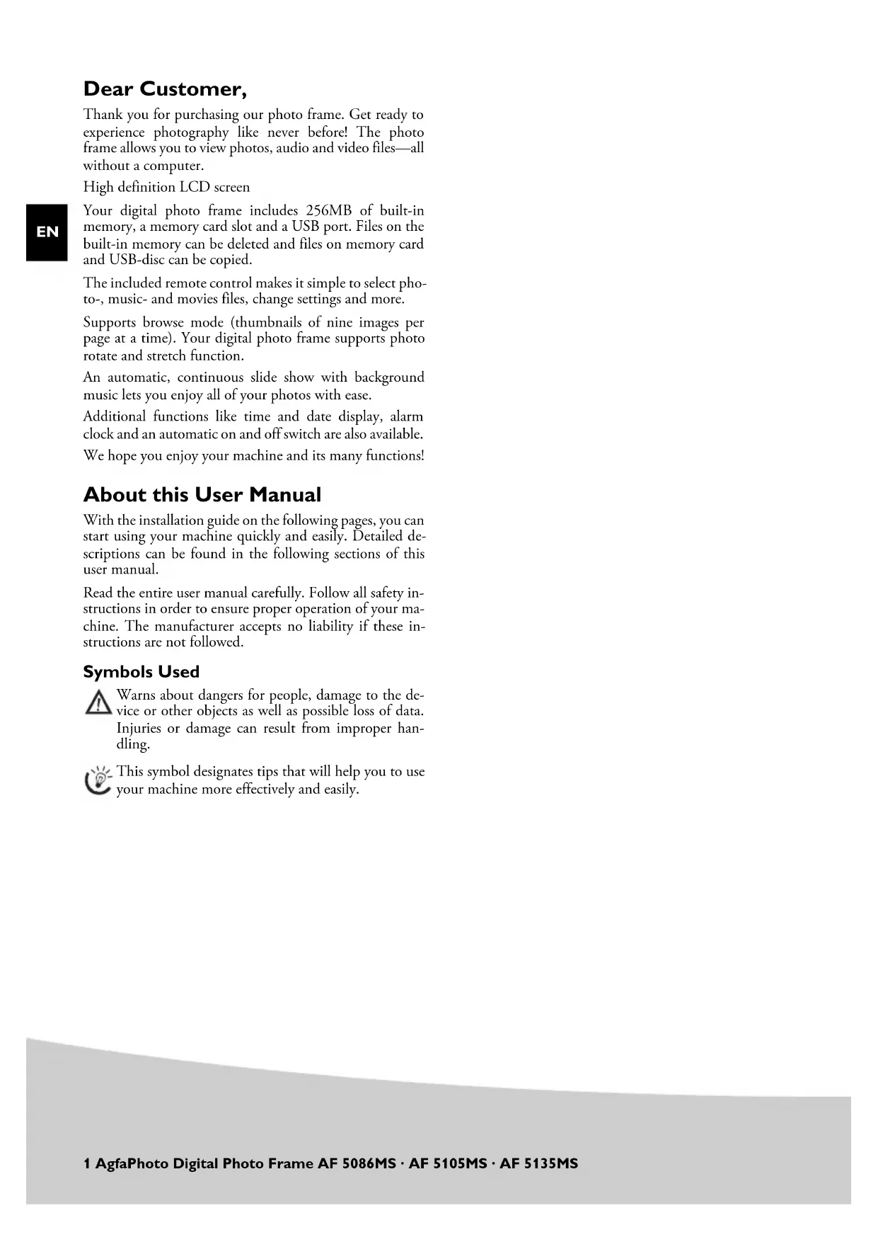 AF 5135MS - Digital photo frame AGFA - Free user manual and instructions
