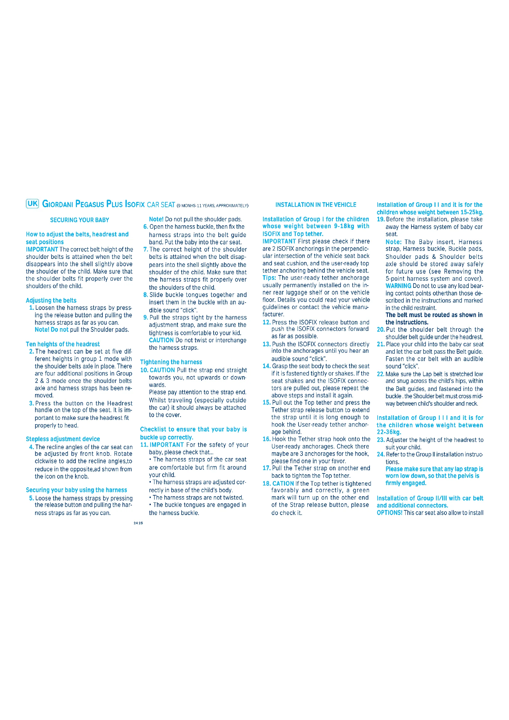 Pegasus Plus 123 Isofix - Car seat Giordani - Free user manual and instructions