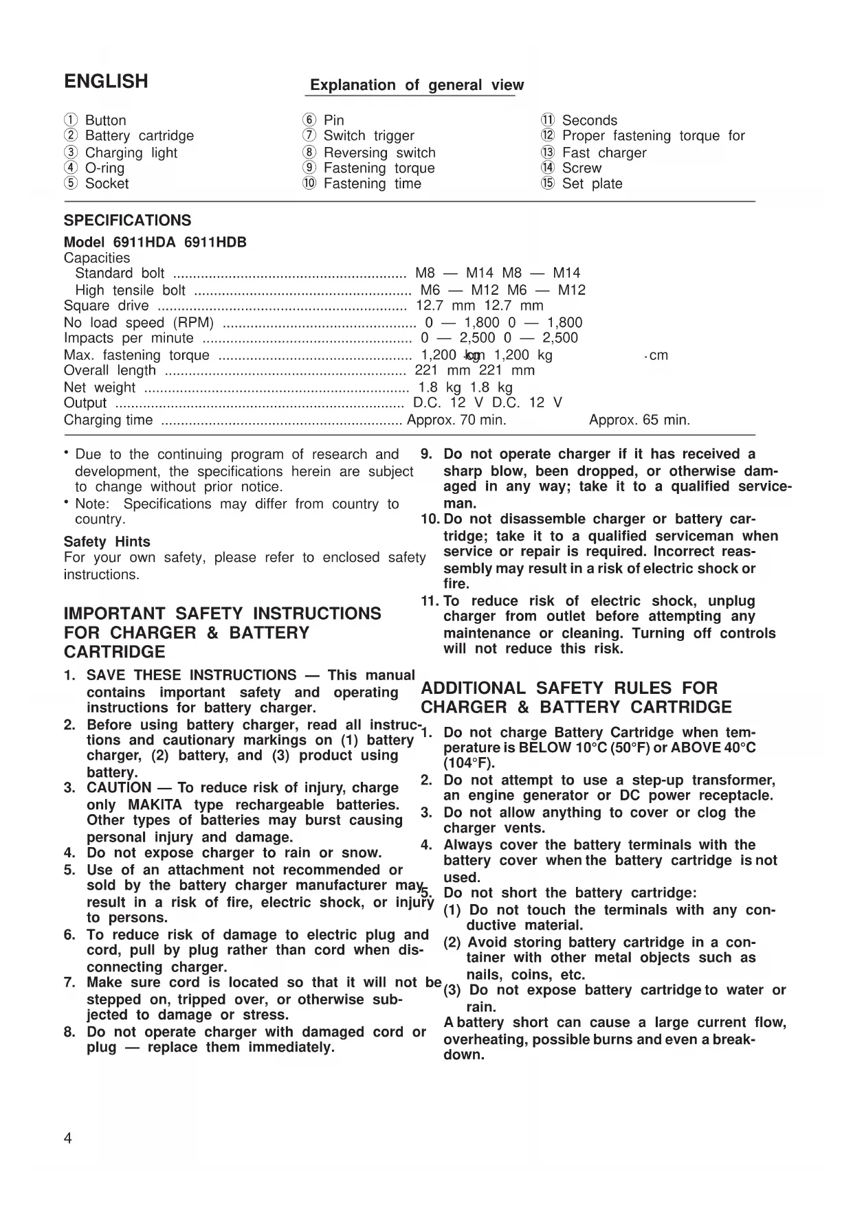 USER MANUAL 6911HDA MAKITA