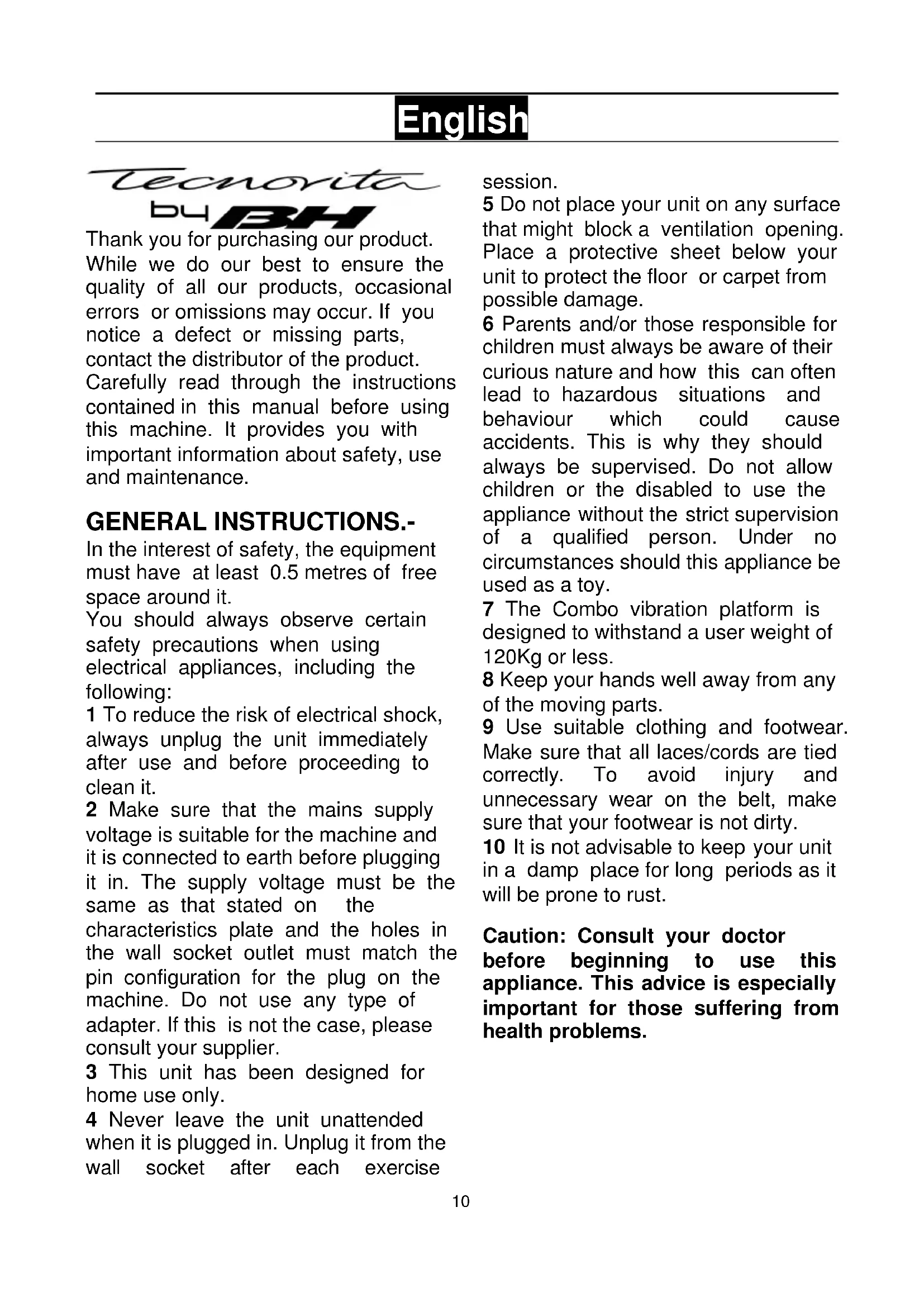 Caution: Consult your doctor before beginning to use this appliance. This advice is especially important for those suffering from health problems.