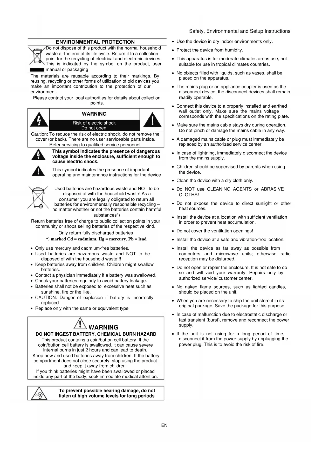 - Used batteries are hazardous waste and NOT to be disposed of with the household waste!!!