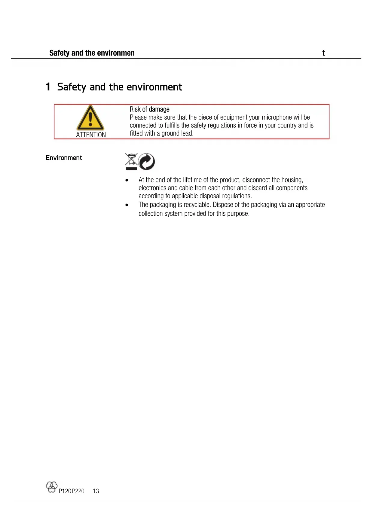 Please make sure that the piece of equipment your microphone will be connected to fulfills the safety regulations in force in your country and is fitted with a ground lead.