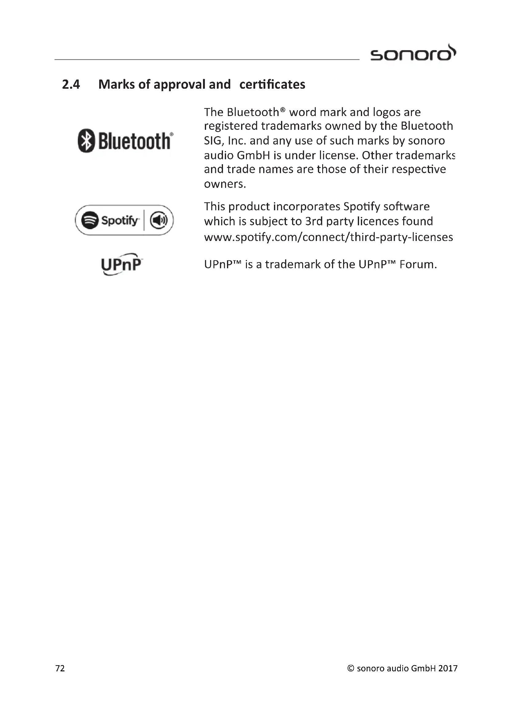 2.4 Marks of approval and certificates 72