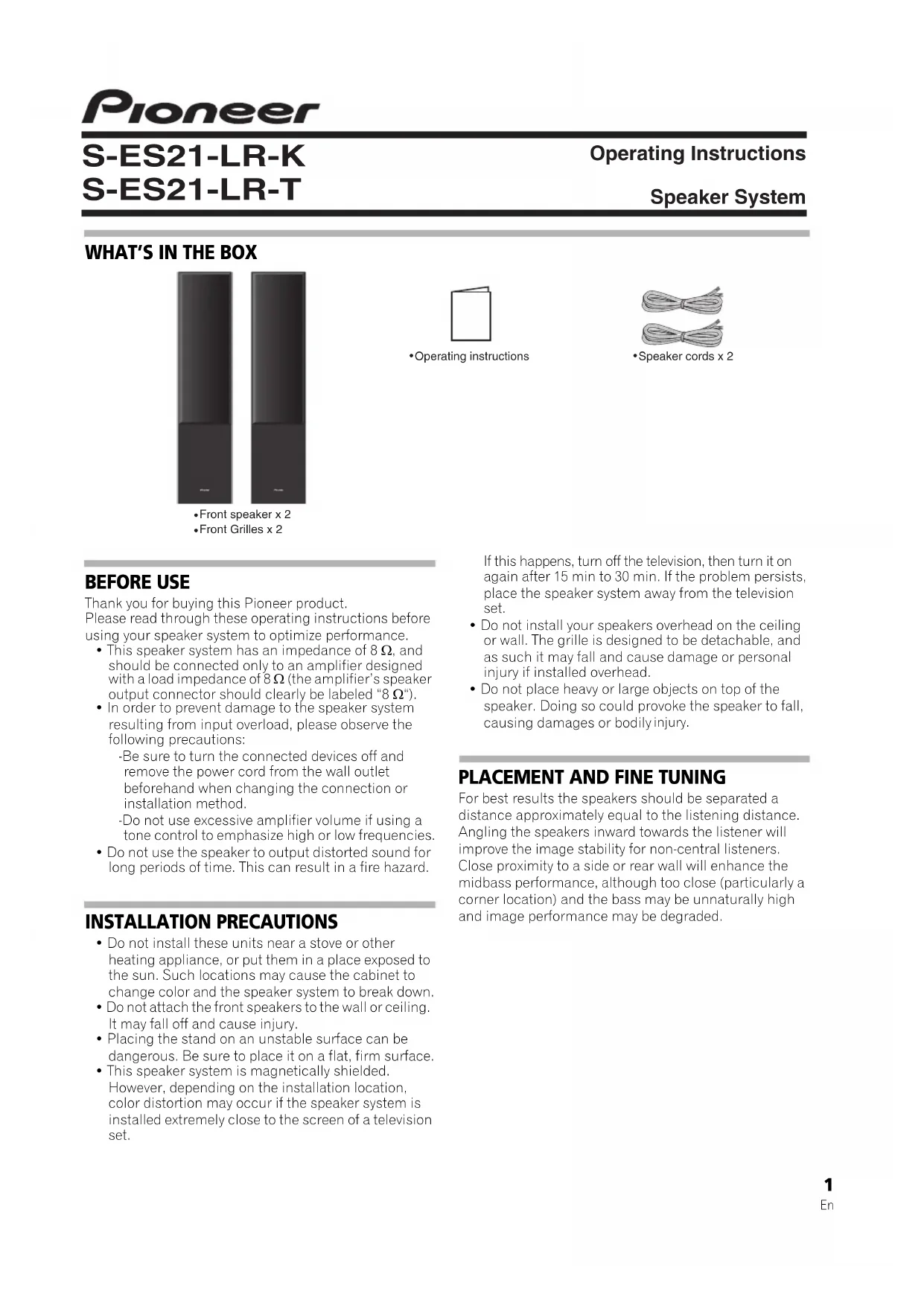 S-ES21-LR-K S-ES21-LR-T Operating Instructions Speaker System