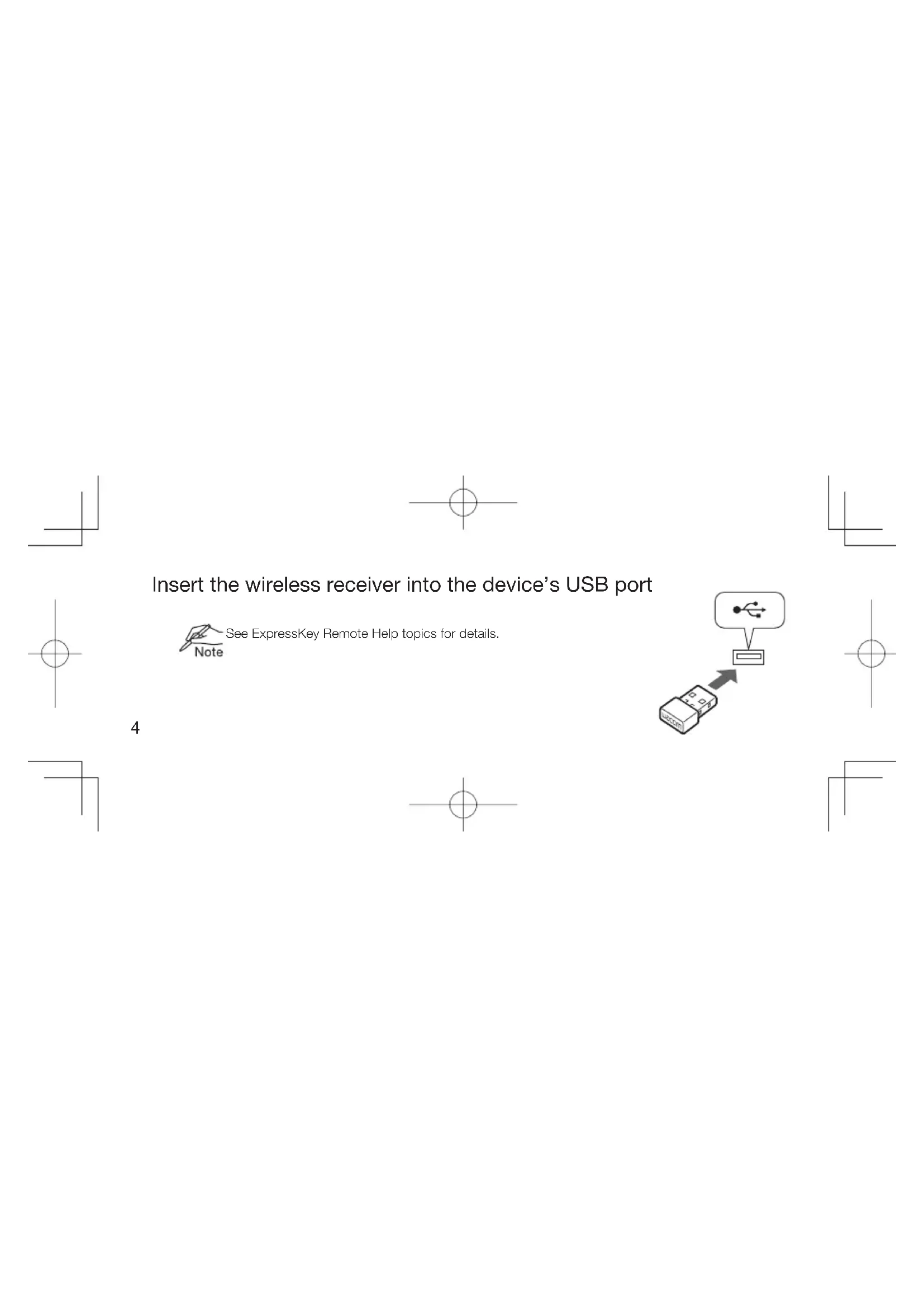 Insert the wireless receiver into the device’s USB port See ExpressKey Remote Help topics for details.5 EN FR ES PT-BR Software Installation