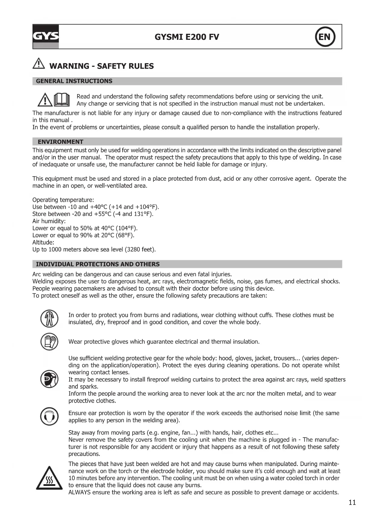 Download the instructions for your Welding machine in PDF format for free! Find your manual GYSMI E200 FV - GYS and take your electronic device back in hand. On this page are published all the documents necessary for the use of your device. GYSMI E200 FV by GYS.
