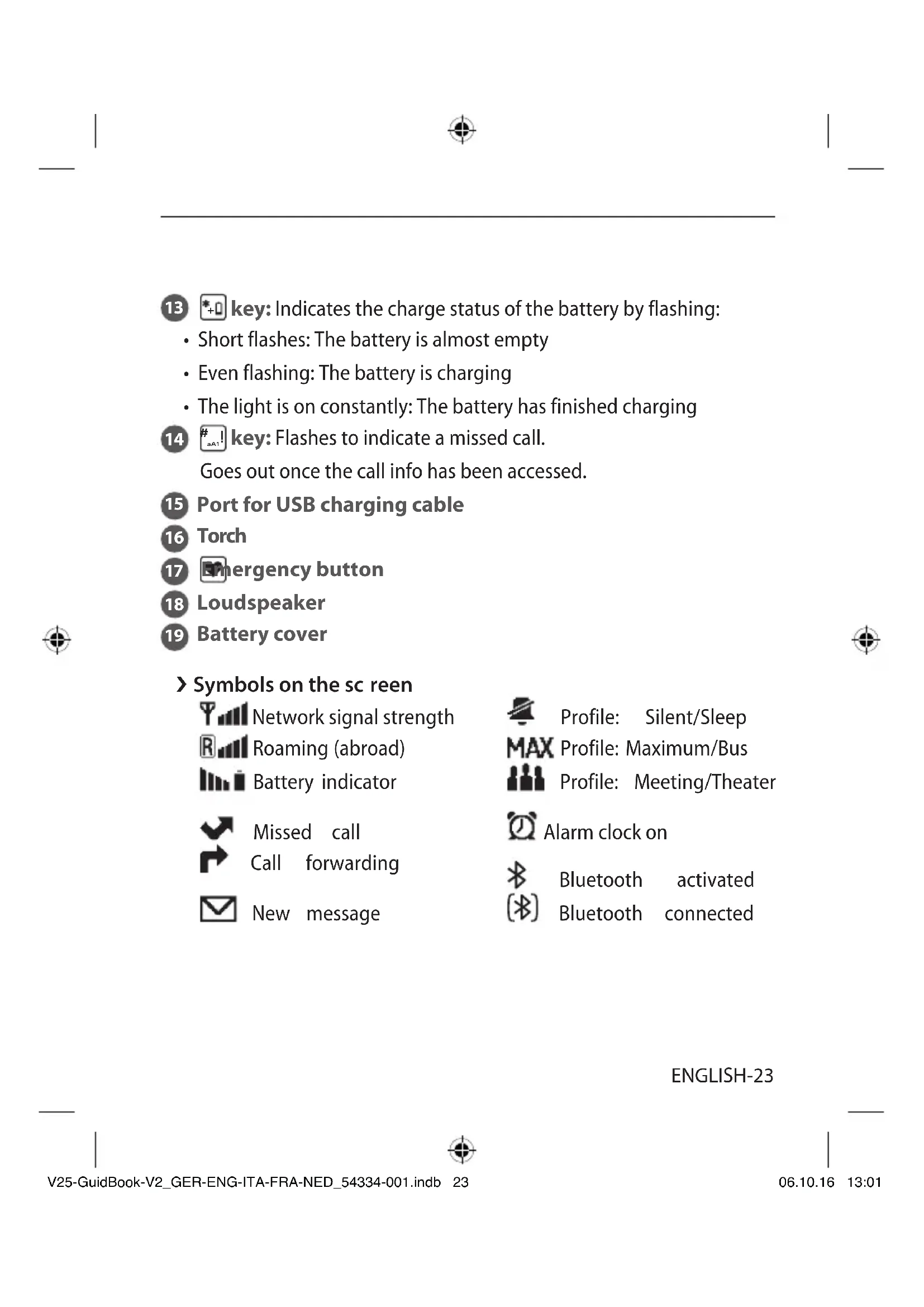 If a few seconds pass without the phone receiving any input from you, the screen will go blank to save energy. In the event of an incoming call or you pressing any key, the screen will automatically light up again. If the keypad is set to lock automatically, the phone will only respond if the green OK button or the key is pressed.