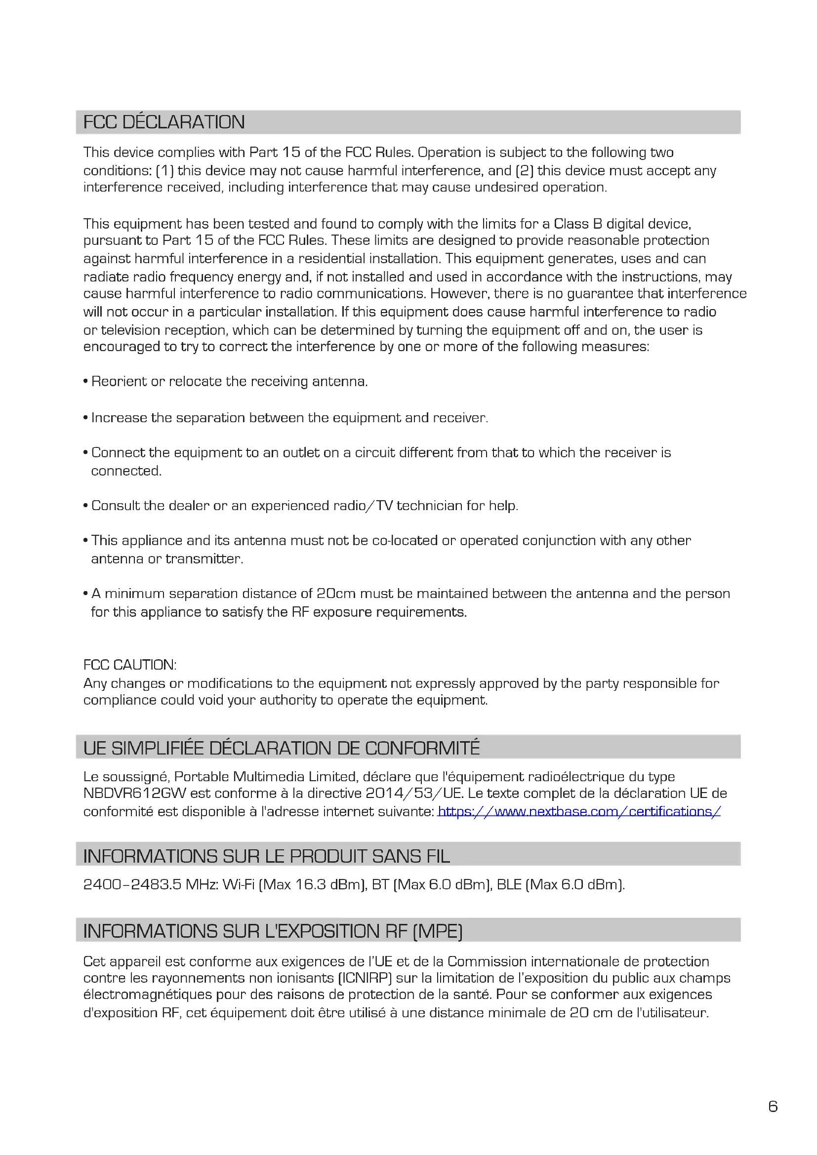 Company Name: Portable Multimedia Ltd Mailing Address: Unit 2, Caerphilly Business Park, Van Road, Caerphilly. CF83 3ED. UK Contact Person: Graham Lambert Signature: Email Address: support@nextbase.com Tel: +44 02920 866429 Date : 14th June 2018