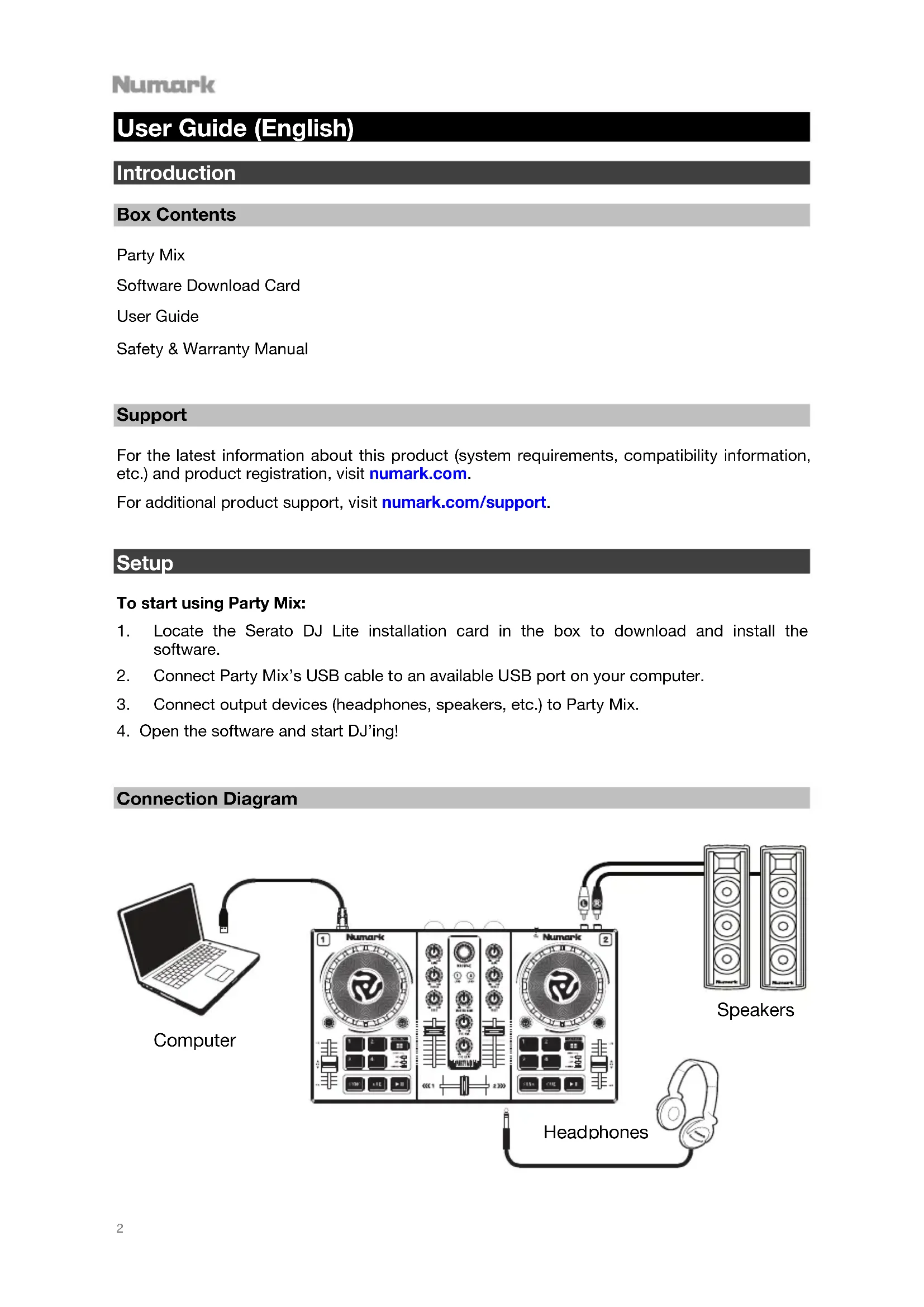Download the instructions for your DJ Equipment in PDF format for free! Find your manual Party Mix - NUMARK and take your electronic device back in hand. On this page are published all the documents necessary for the use of your device. Party Mix by NUMARK.
