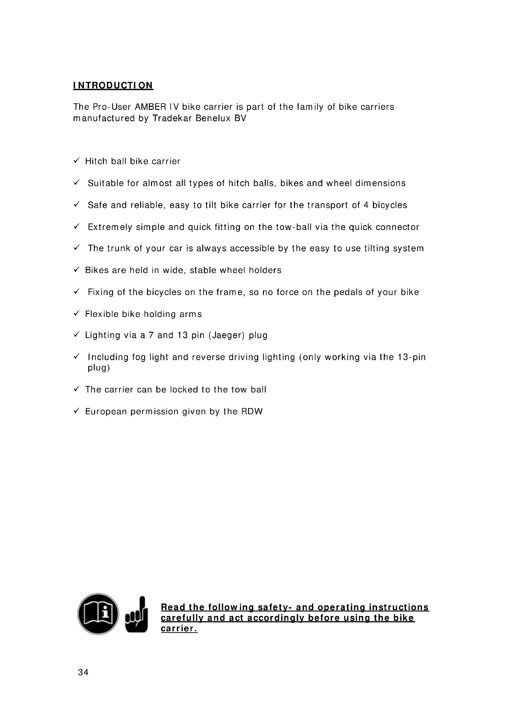 The assembly and installation of the bike carrier can only be done according this instruction manual.