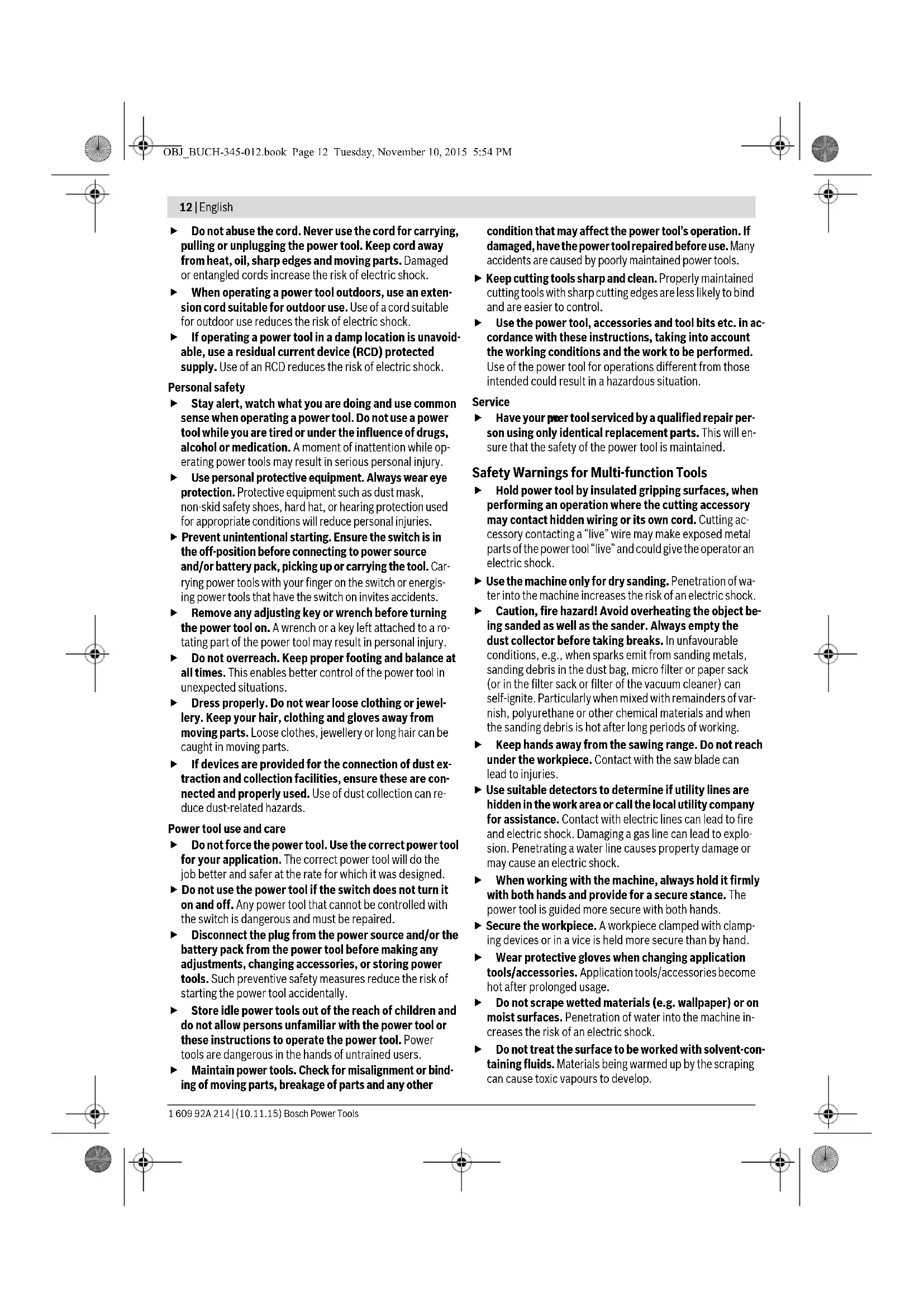 OBJ_BUCH-345-012.book Page 3 Tuesday, November 10, 2015 5:54 PM1 609 92A 214 | (10.11.15) Bosch Power Tools 4 |