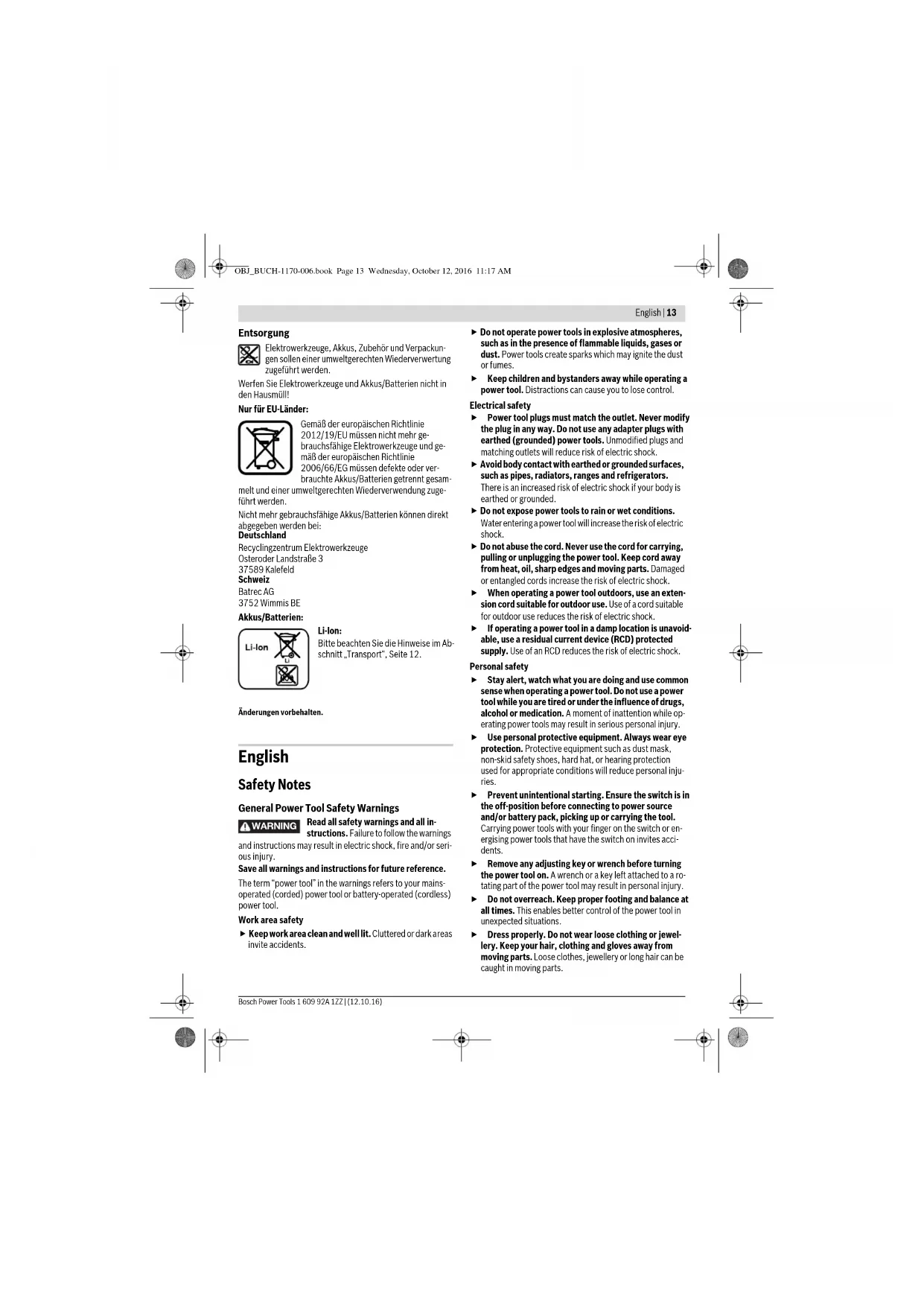 OBJ_BUCH-1170-006.book Page 2 Wednesday, October 12, 2016 11:17 AM| 3 Bosch Power Tools 1 609 92A 1ZZ | (12.10.16)