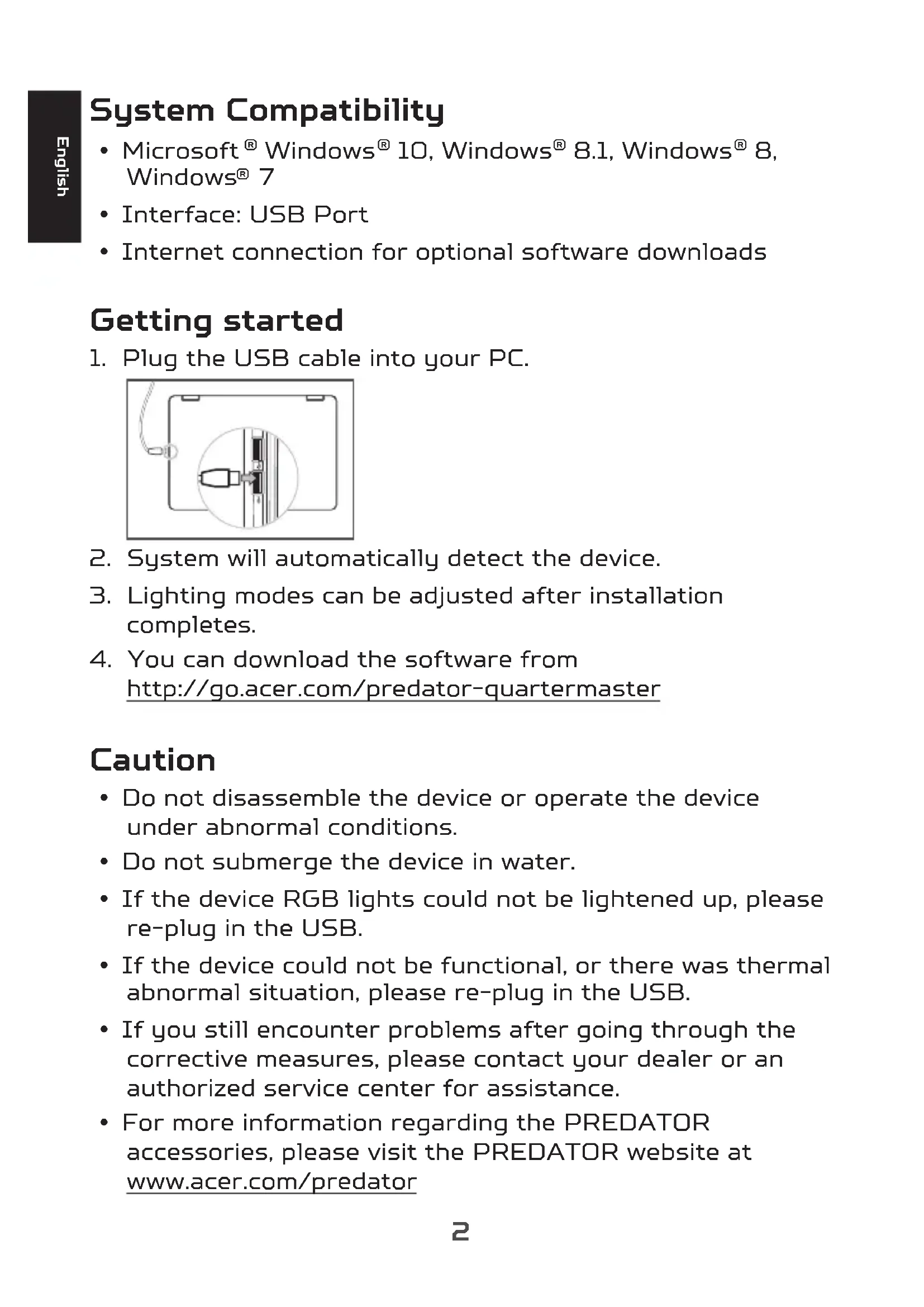 - For more information regarding the PREDATOR accessories, please visit the PREDATOR website at www.acer.com/predator