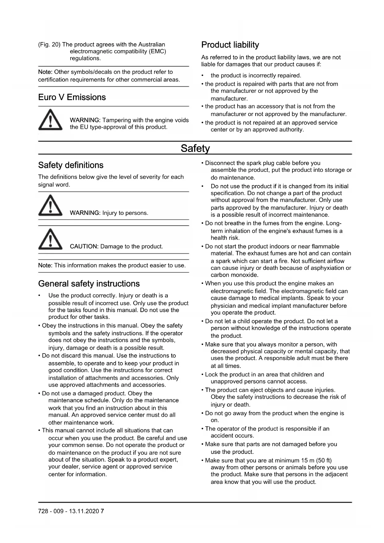WARNING: Tampering with the engine voids the EU type-approval of this product.