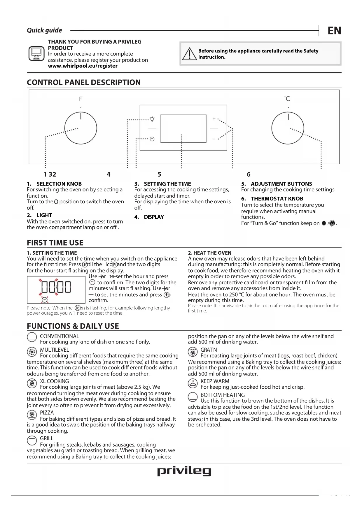 PRODUCT In order to receive a more complete assistance, please register your product on www . whirlpool . eu/register Before using the appliance carefully read the Safety Instruction.