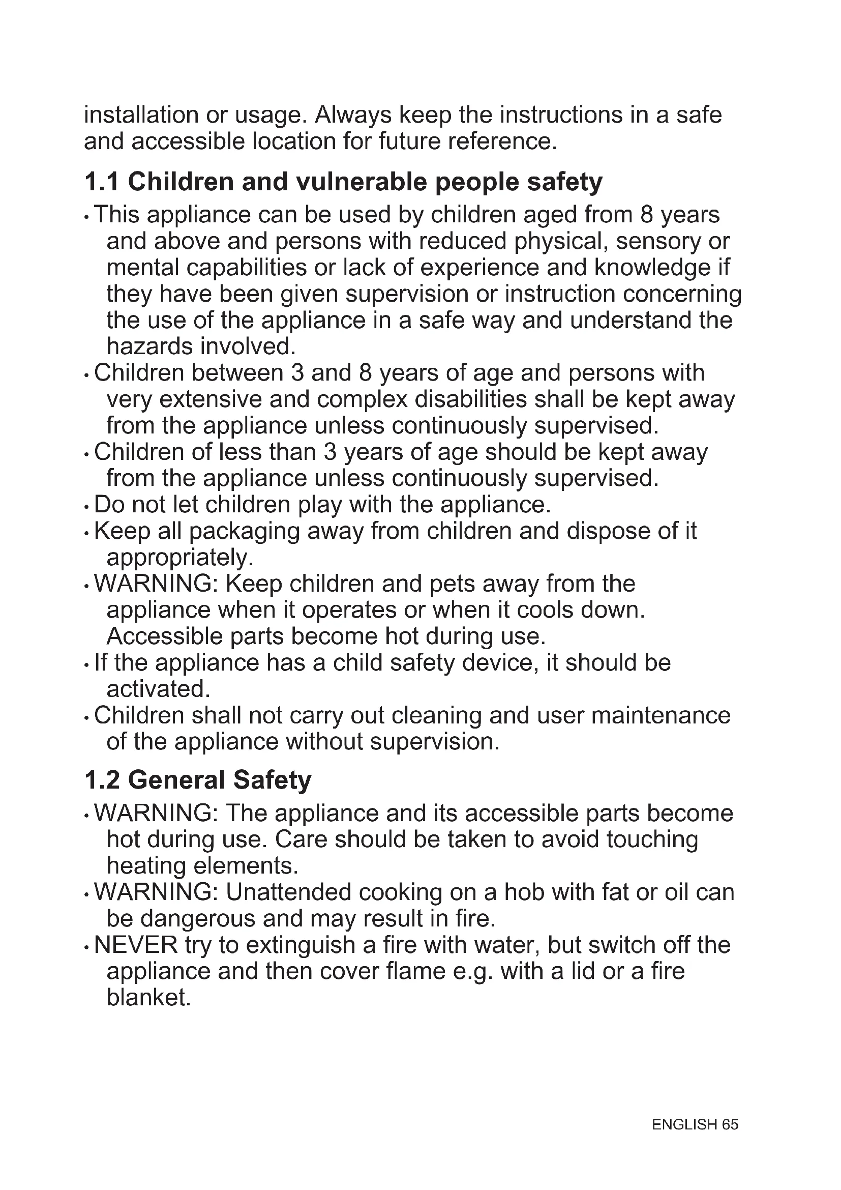 - Children between 3 and 8 years of age and persons with very extensive and complex disabilities shall be kept away from the appliance unless continuously supervised.