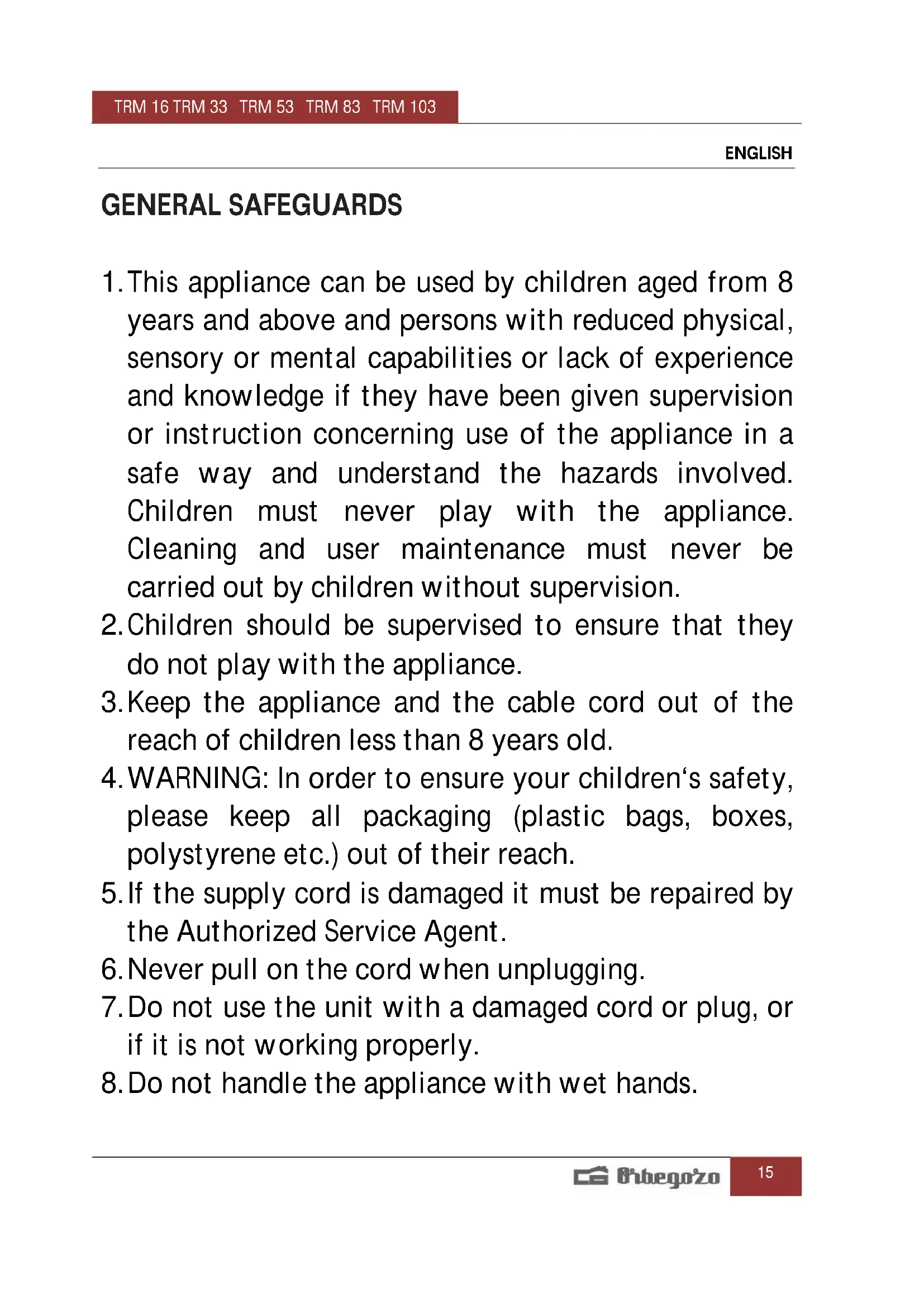 USER MANUAL TRM 83 Orbegozo