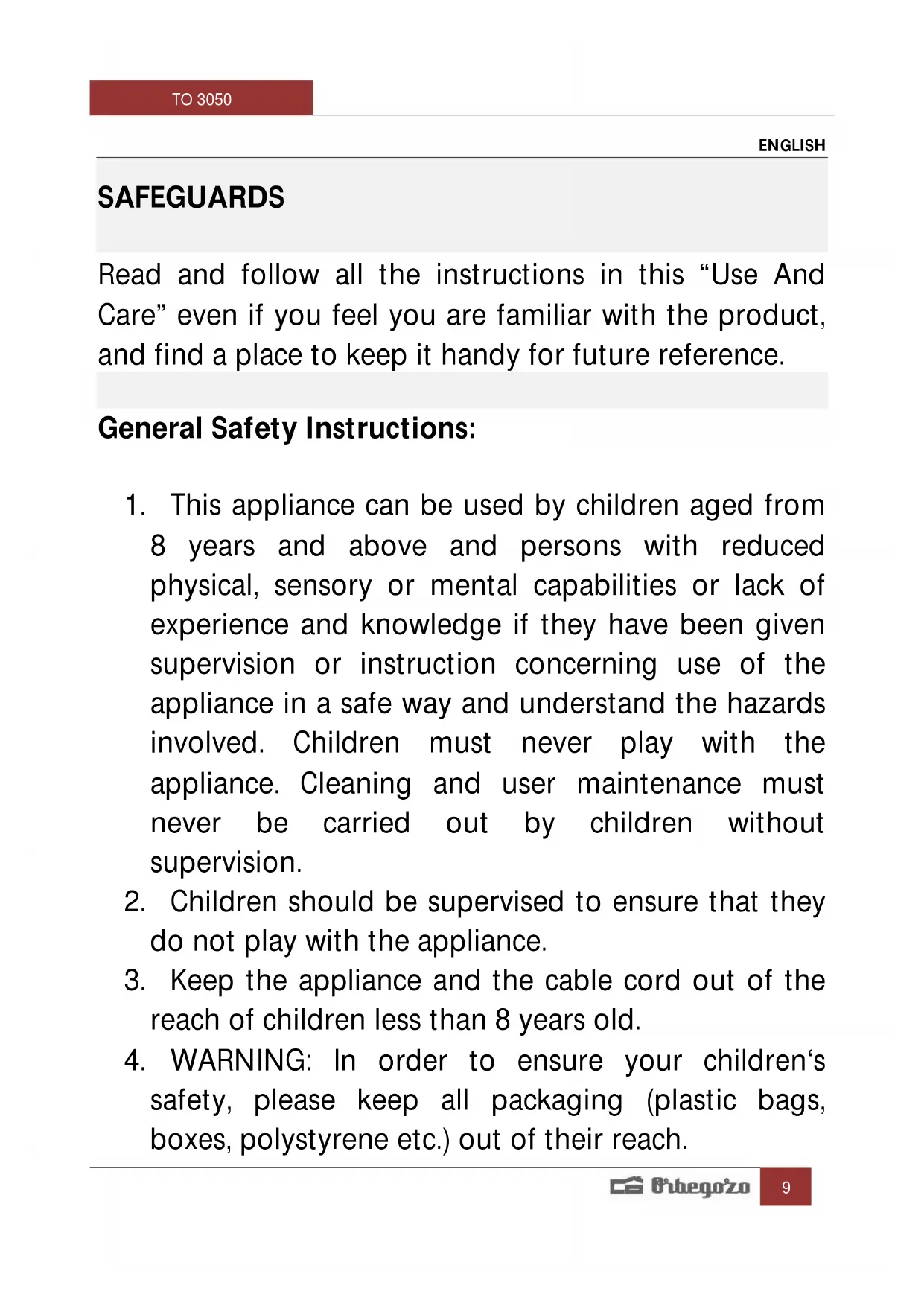 Find the device manual for free TO 3050 Orbegozo in PDF.