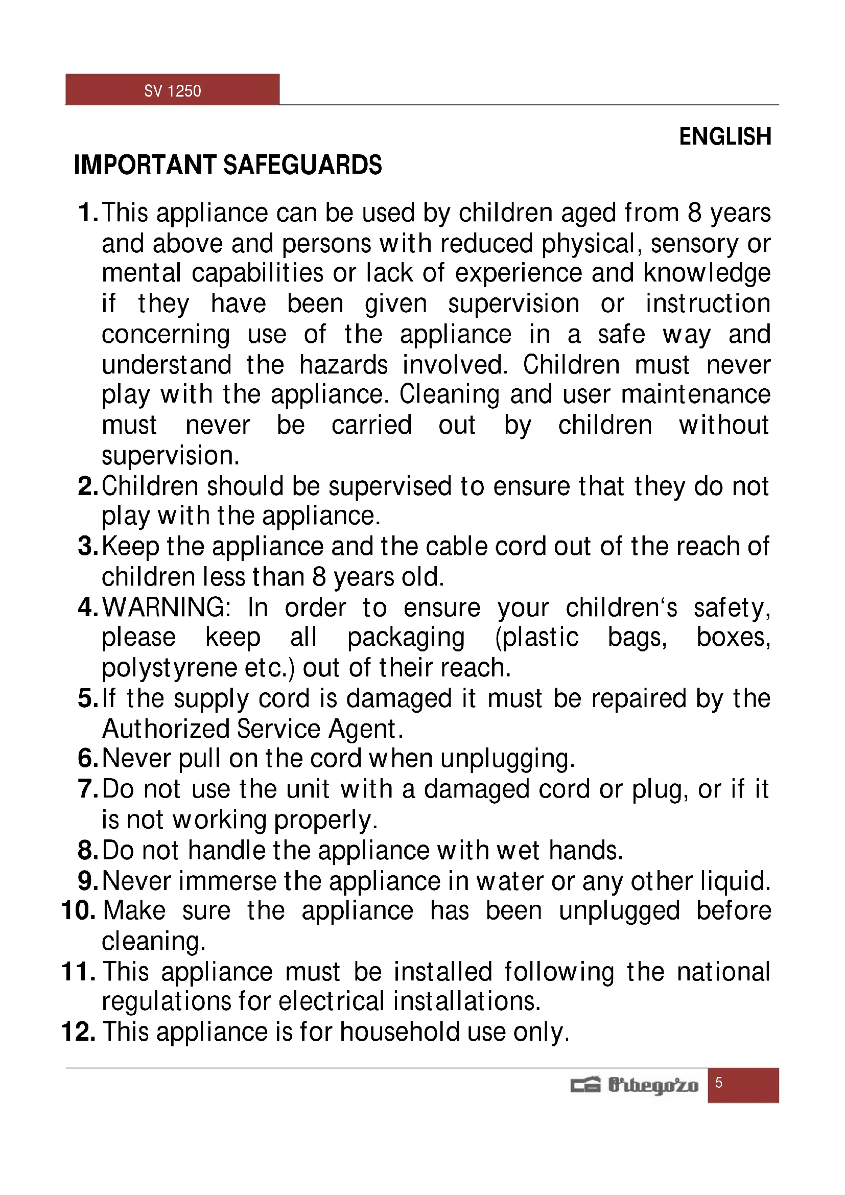 Find the device manual for free SV 1250 Orbegozo in PDF.