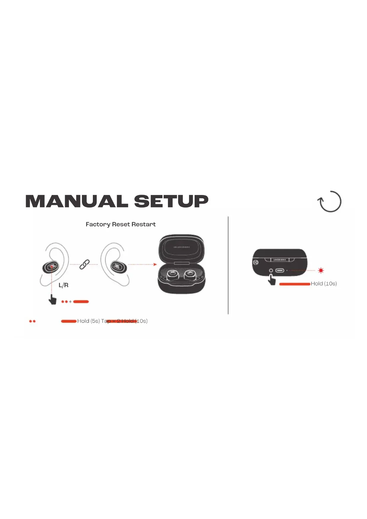 SETTINGSMANUAL SETUP Factory Reset Restart Hold (5s) Tap × 2 Hold (10s) L/R Hold (10s)