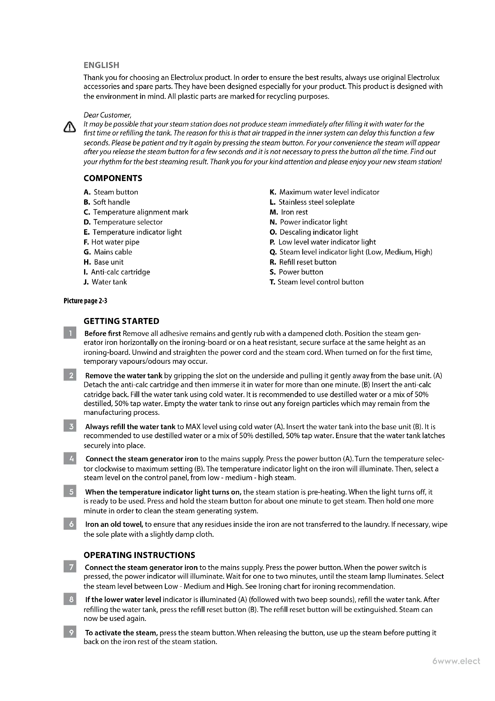 Thank you for choosing an Electrolux product. In order to ensure the best results, always use original Electrolux accessories and spare parts. They have been designed especially for your product. This product is designed with the environment in mind. All plastic parts are marked for recycling purposes.