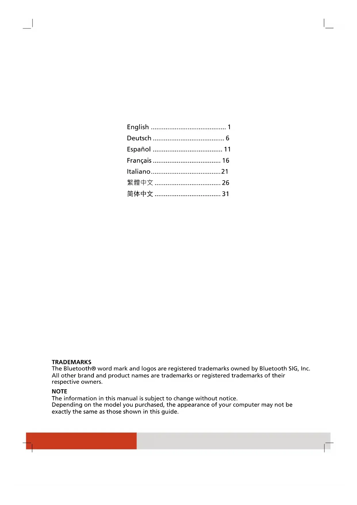 displays Windows desktop. Taking Care of the Computer Location Guidelines For optimal performance, use the com- puter where the recommended tempe- rature is between 0 C (32 F) and 55 C (131 F) – actual operating temperature depending on product specifications. Avoid placing the computer in a location subject to high humidity, extreme tempe- ratures, mechanical vibration, direct sun- light, or heavy dust. Using in extreme environments for long periods can result in product deterioration and a shortened product life. Operating in an environment with metallic dust is not allowed. Place the computer on a flat and steady surface. Do not stand the computer on its side or store it in an upside-down position. A strong impact by dropping or hitting may damage the computer. Do not cover or block any ventilation openings on the computer. For example, do not place the computer on a bed, sofa, rug, or other similar surface. Otherwise, overheating may occur that results in damage to the computer. As the computer can become very hot during operation, keep it away from objects that are vulnerable to heat. Keep the computer at least 13 cm (5 inches) away from electrical appliances that can generate a strong magnetic field such as a TV, refrigerator, motor, or a large audio speaker. Avoid moving the computer abruptly from a cold to a warm place. A temperature difference of more than 10 C (18 F) may cause condensation inside the unit, which may damage the storage media. General Guidelines Do not expose your skin to the computer when operating it in a very hot or cold environment. Do not place heavy objects on top of the computer as this may damage the display.4 English The screen surface is easily scratched. Avoid touching it with a sharp object such as a pen or pencil. LCD image sticking occurs when a fixed pattern is displayed on the screen for a prolonged period of time. You can avoid the problem by limiting the amount of static content on the display. It is recom- mended that you use a screen saver or turn off the display when it is not in use. To maximize the life of the backlight in the display, allow the backlight to auto- matically turn off as a result of power management. Cleaning Guidelines Never clean the computer with its power on. Use a soft cloth moistened with water or a non-alkaline detergent to wipe the exterior of the computer. Gently wipe the display with a soft, lint- free cloth. Do not use alcohol or detergent on the display. Dust or grease on the touchpad can affect its sensitivity. Clean the pad by using ad- hesive tape to remove the dust and grease on its surface. If water or liquid is split onto the computer, wipe it dry and clean when possible. Though your computer is water-proof, do not leave the computer wet when you can dry it. In case water or liquid is spilt into the key- board, immediately turn off the computer and unplug the AC adapter. Then tilt the keyboard 90 degrees to the right (where the drainpipe ends are located) to let the liquid flow out of the keyboard. Make sure to clean up any part of the spill you can get to. Though the keyboard of your computer is spill-proof, liquid will remain in the keyboard enclosure if you don’t remove it. Wait for the keyboard to air dry before using the computer again. If the computer gets wet where the tem- perature is 0 C (32 F) or below, freeze damage may occur. Make sure to dry the wet computer. Battery Pack Guidelines Recharge the battery pack when it is nearly discharged. When recharging, make sure that the battery pack is fully charged. Doing so may avoid harm to the battery pack. The battery pack is a consumable product and the following conditions will shorten its life: – when frequently charging the battery pack – when using, charging, or storing the battery in high temperature condition To avoid hastening the deterioration of the battery pack thereby prolonging its useful life, minimize the number of times you charge it so as not to frequently increase its internal temperature. Charge the battery pack between 10 C ~ 30 C (50 F ~ 86 F) temperature range. A higher environment temperature will cause the battery pack’s temperature to rise. Avoid charging the battery pack inside a closed vehicle and in hot weather con- dition. Also, charging will not start if the battery pack is not within the allowed temperature range. It is recommended that you do not charge the battery pack more than once a day. It is recommended that you charge the battery pack with the computer’s power off. To maintain the battery pack’s operating efficiency when removed from the com- puter, store it in a cool dark place and with 30% ~ 40% charge remaining. Important guidelines when using the bat- tery pack. When installing or removing the battery pack take note of the following: – avoid installing or removing the battery pack when the computer is in Sleep mode. Abruptly removing the battery pack may cause loss of data or the computer may become unstable. – avoid touching the battery pack termi- nals or damage may occur, thereby causing improper operation to it or the computer.5 English The computer’s input voltage and sur- rounding temperature will directly affect the battery pack’s charge and discharge time: – charging time will be prolonged when the computer is turned on. To shorten the charging time, it is recom- mended that you place the computer in Sleep or hibernation mode. – a low temperature will prolong the charging time as well as hasten the dis- charge time. When using battery power in an extremely low temperature environment, you may experience shortened operating time and incorrect battery level reading. This phe- nomenon comes from the chemical char- acteristics of batteries. The appropriate operating temperature for the battery is -10 C ~ 50 C (14 F ~ 122 F). Touchscreen Guidelines Use the finger or the included stylus on the display. Using a sharp or metallic object other than your finger or stylus may cause scratch