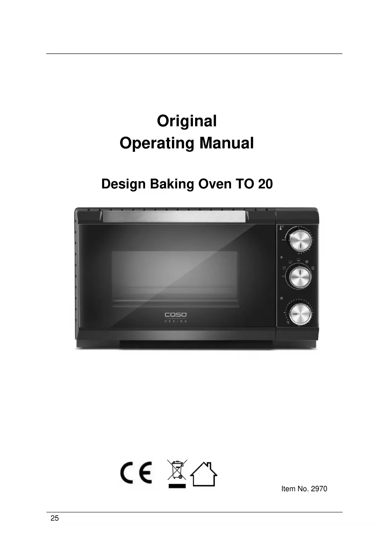 Download the instructions for your Oven in PDF format for free! Find your manual TO 20 oven - CASO and take your electronic device back in hand. On this page are published all the documents necessary for the use of your device. TO 20 oven by CASO.