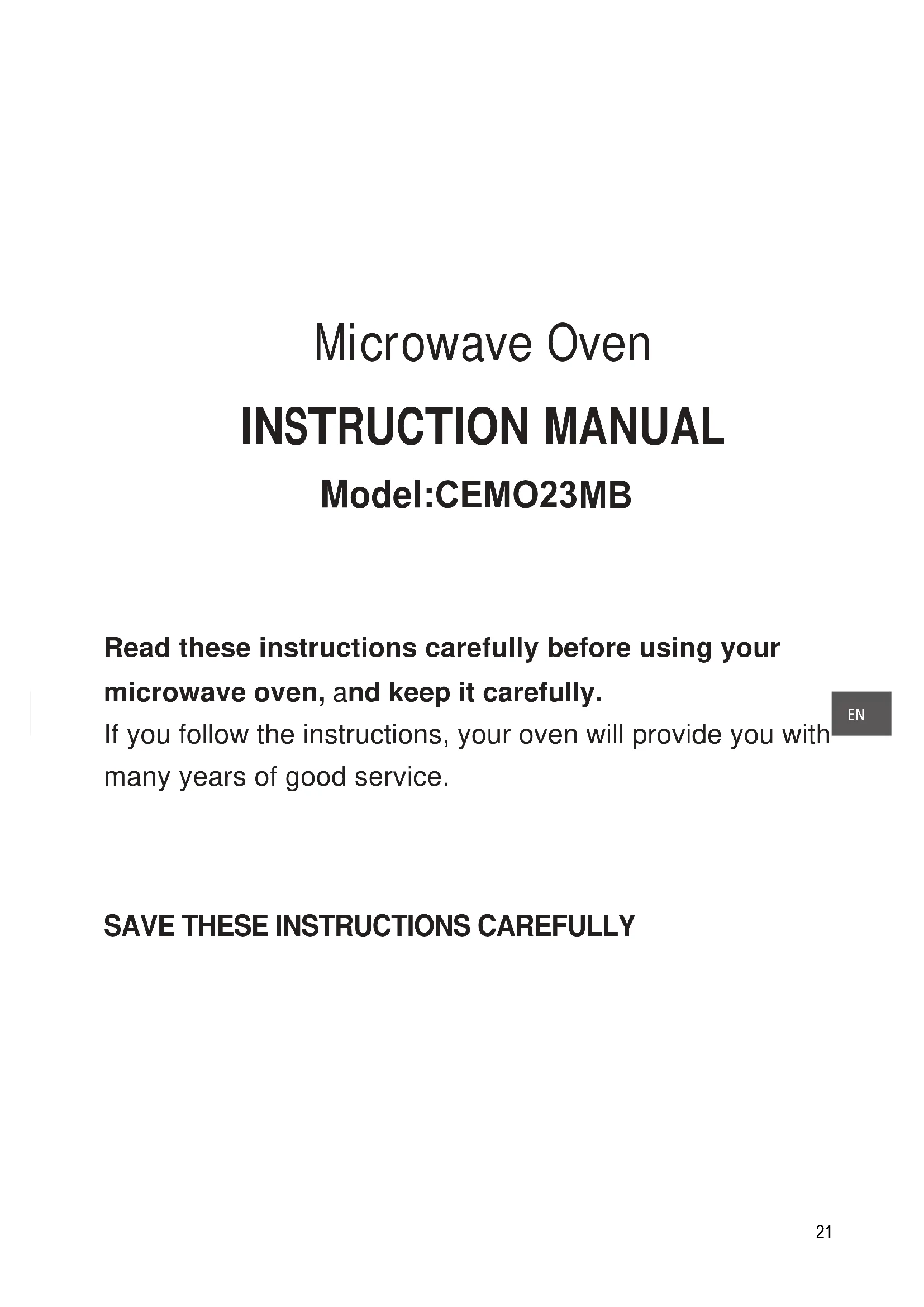 Read these instructions carefully before using your microwave oven, and keep it carefully.