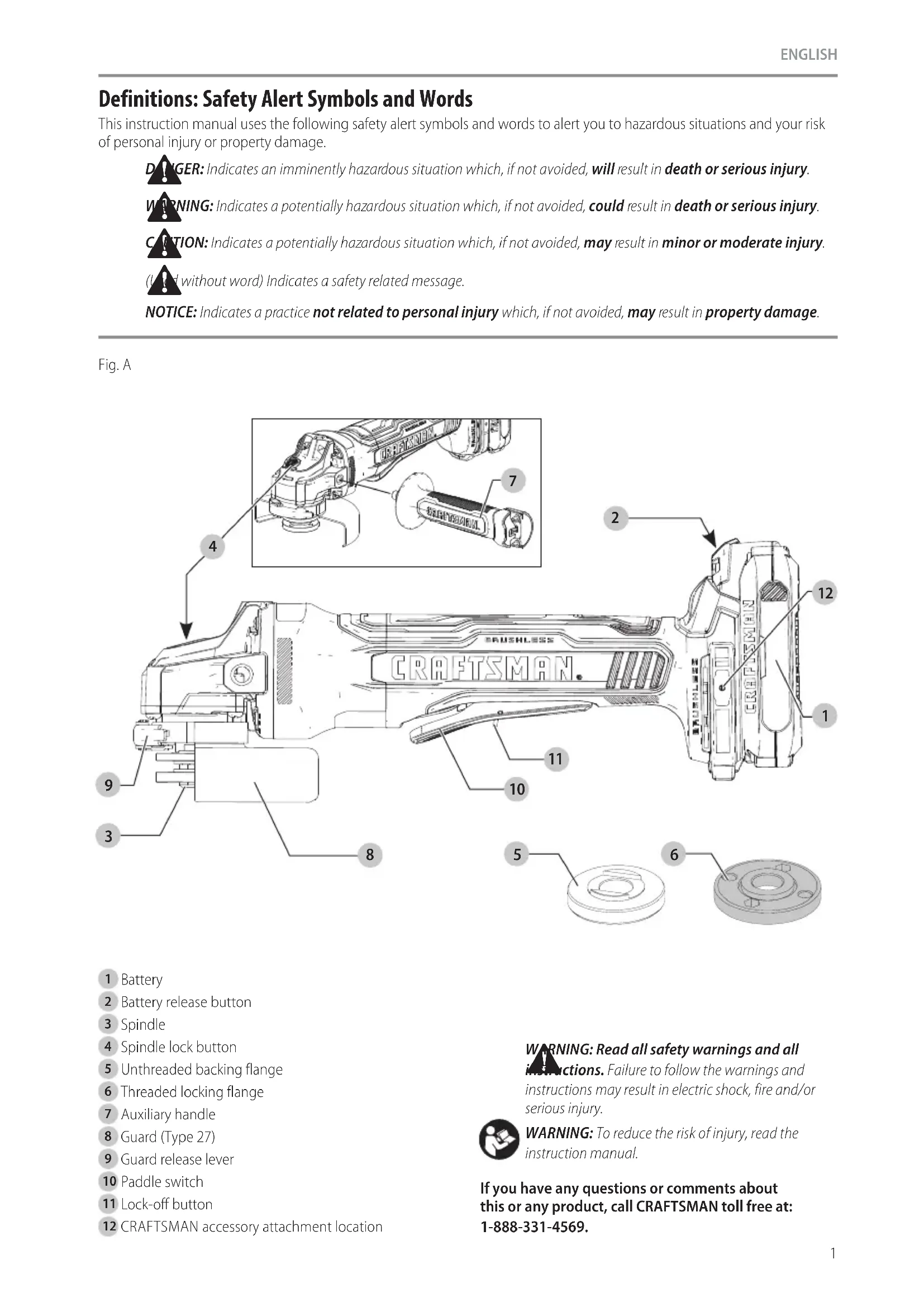 offered by CRAFTSMAN, have not been tested with this product, use of such accessories with this tool could be hazardous. To reduce the risk of injury, only CRAFTSMAN recommended accessories should be used with thisproduct. Recommended accessories for use with your tool are available at extra cost from your local dealer or authorized service center. If you need assistance in locating any accessory, please contact CRAFTSMAN call 1-888-331-4569.ENGLISH