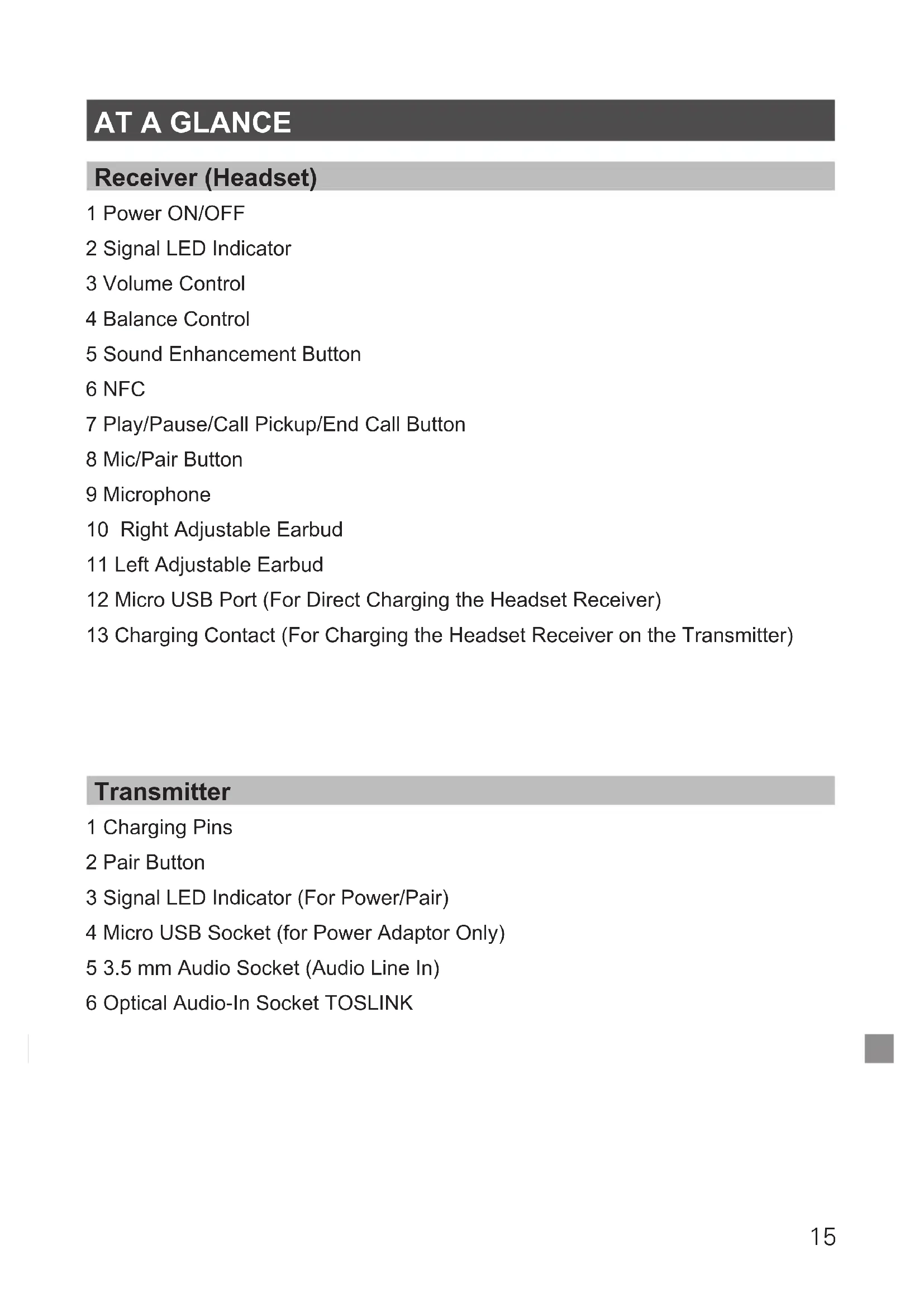 12 Micro USB Port (For Direct Charging the Headset Receiver)