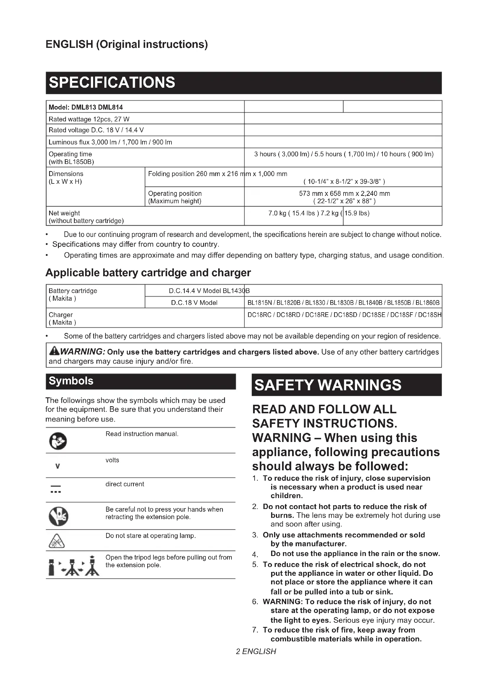 DML813 - Lighting MAKITA - Free user manual and instructions